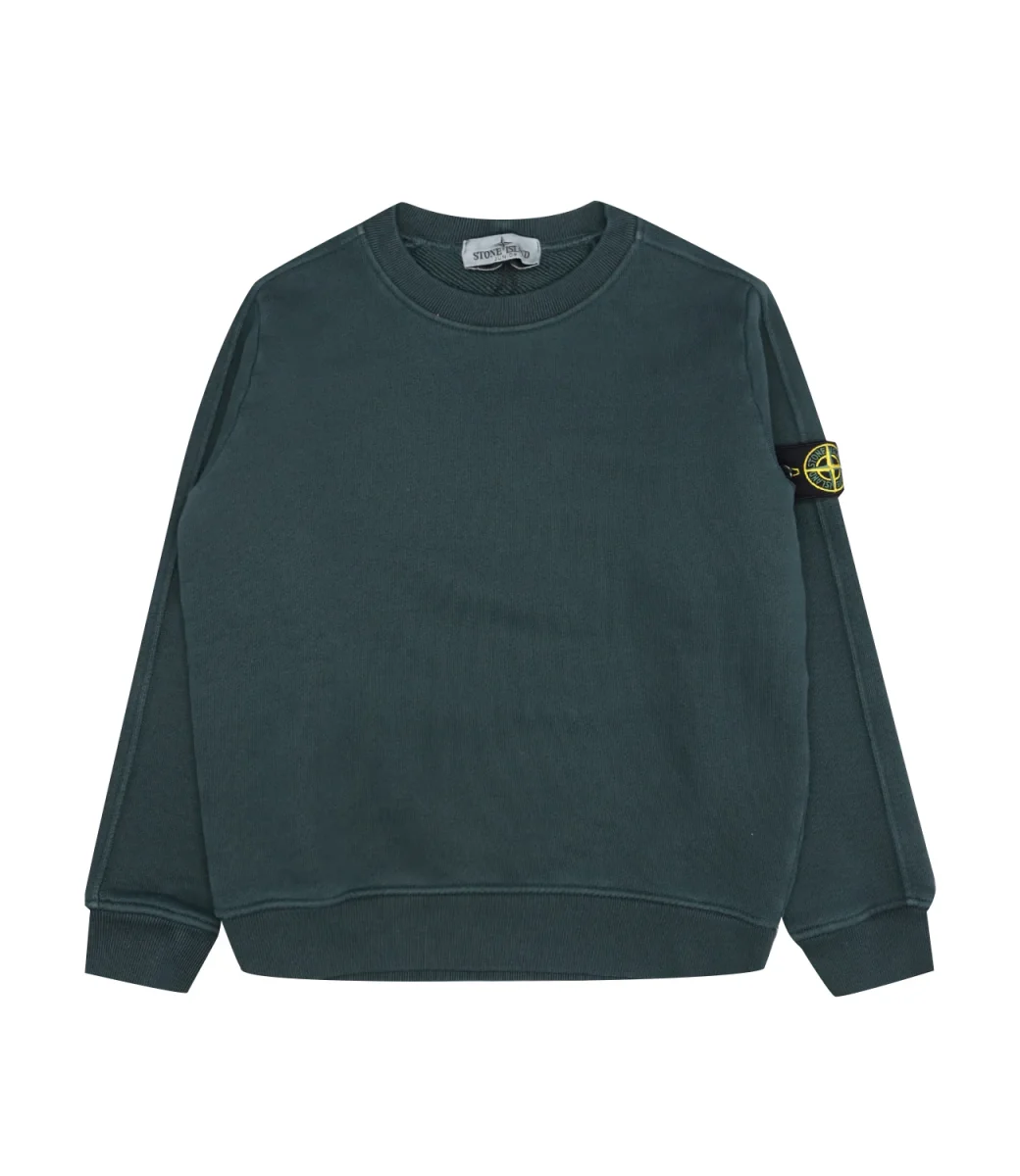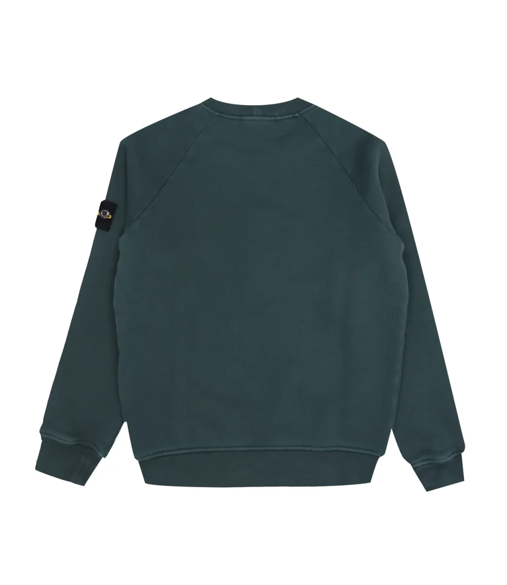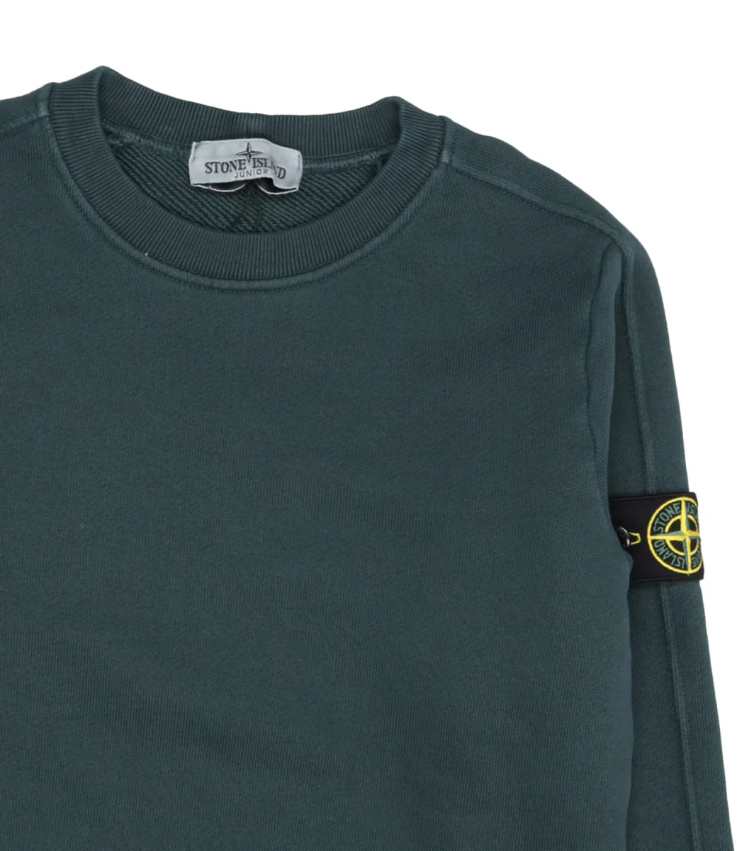 Felpa Stone Island Junior realizzata in cotone felpato organico a battitura diagonale, tinta in capo con l’esclusiva tecnica “OLD”dall’aspetto leggermente invecchiato. Girocollo, distintiva cucitura continua dalle spalle per la lunghezza delle maniche. Badge Stone Island sulla manica sinistra. Polsini e bordo sul fondo a costine.