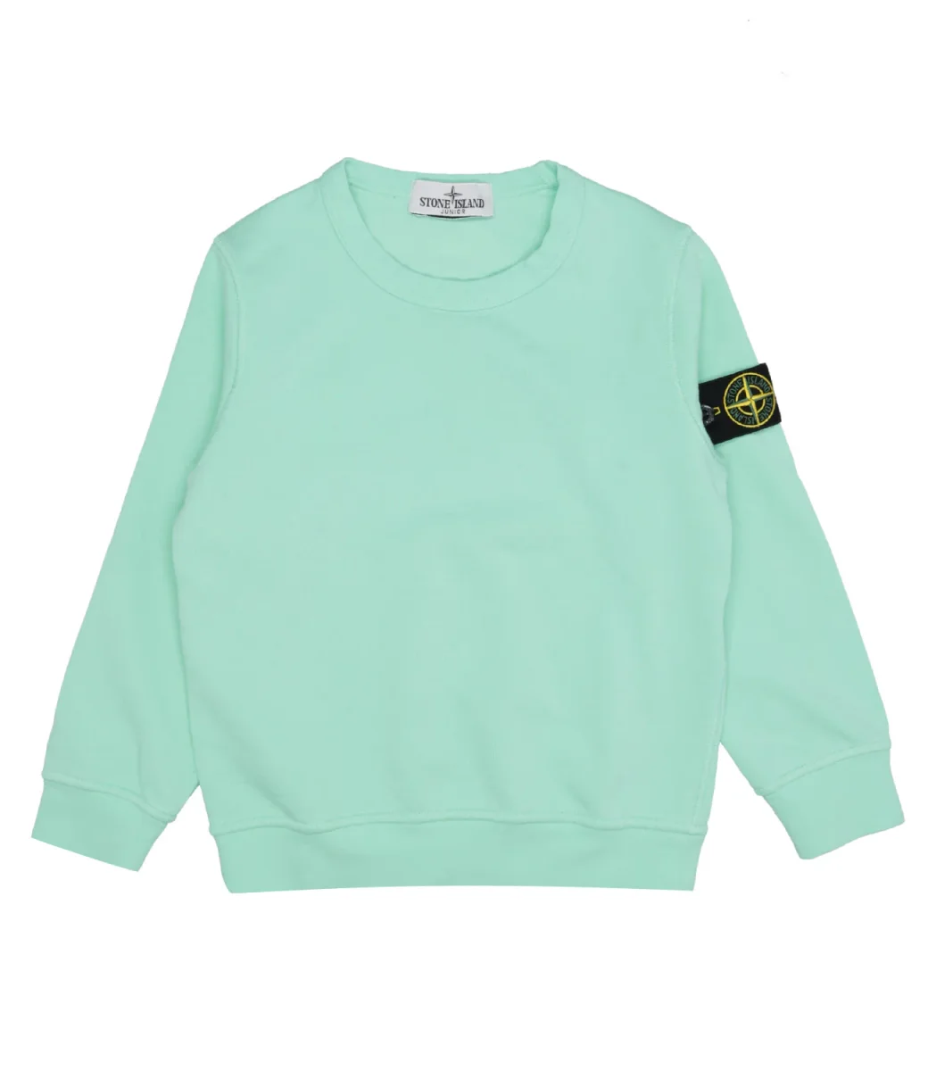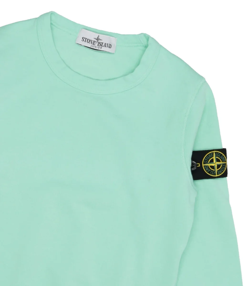 Felpa Stone Island in cotone a girocollo e maniche lunghe con tag con logo sulla manica sinistra.