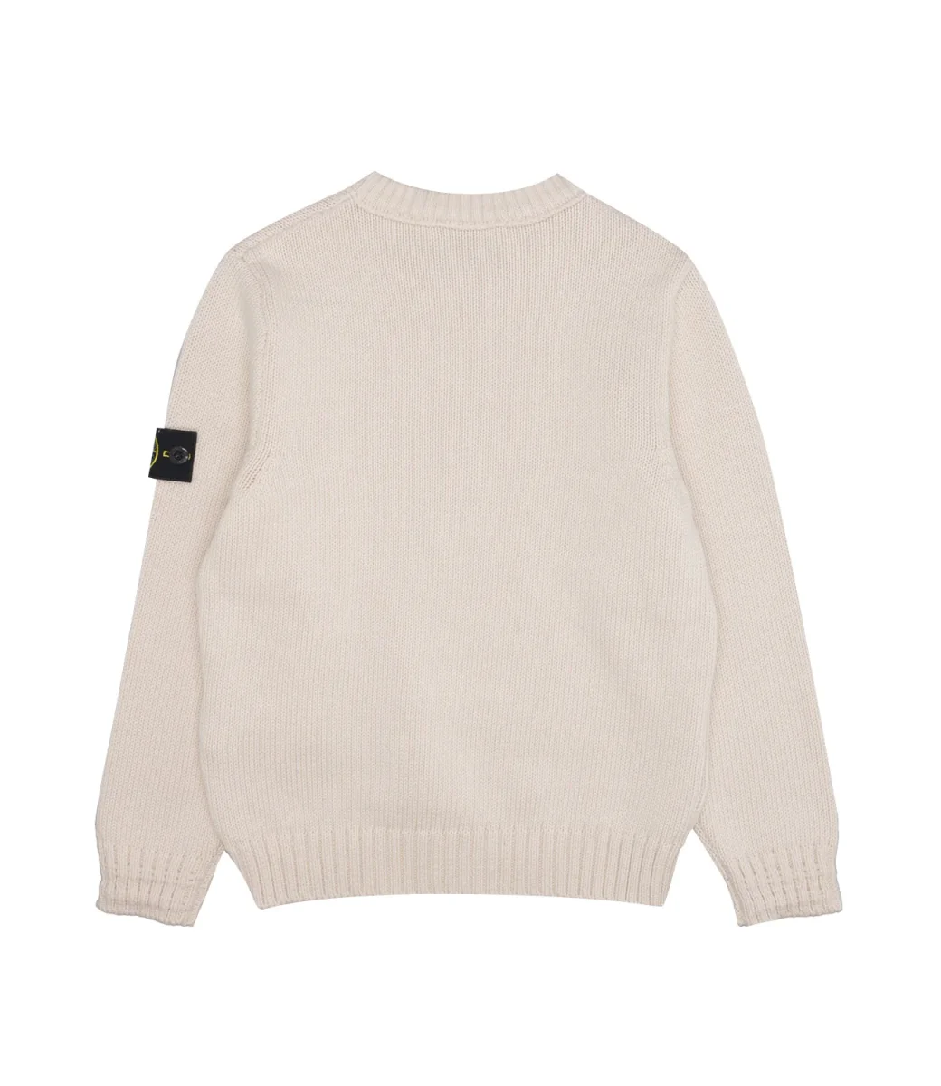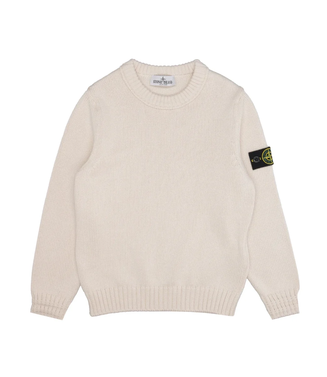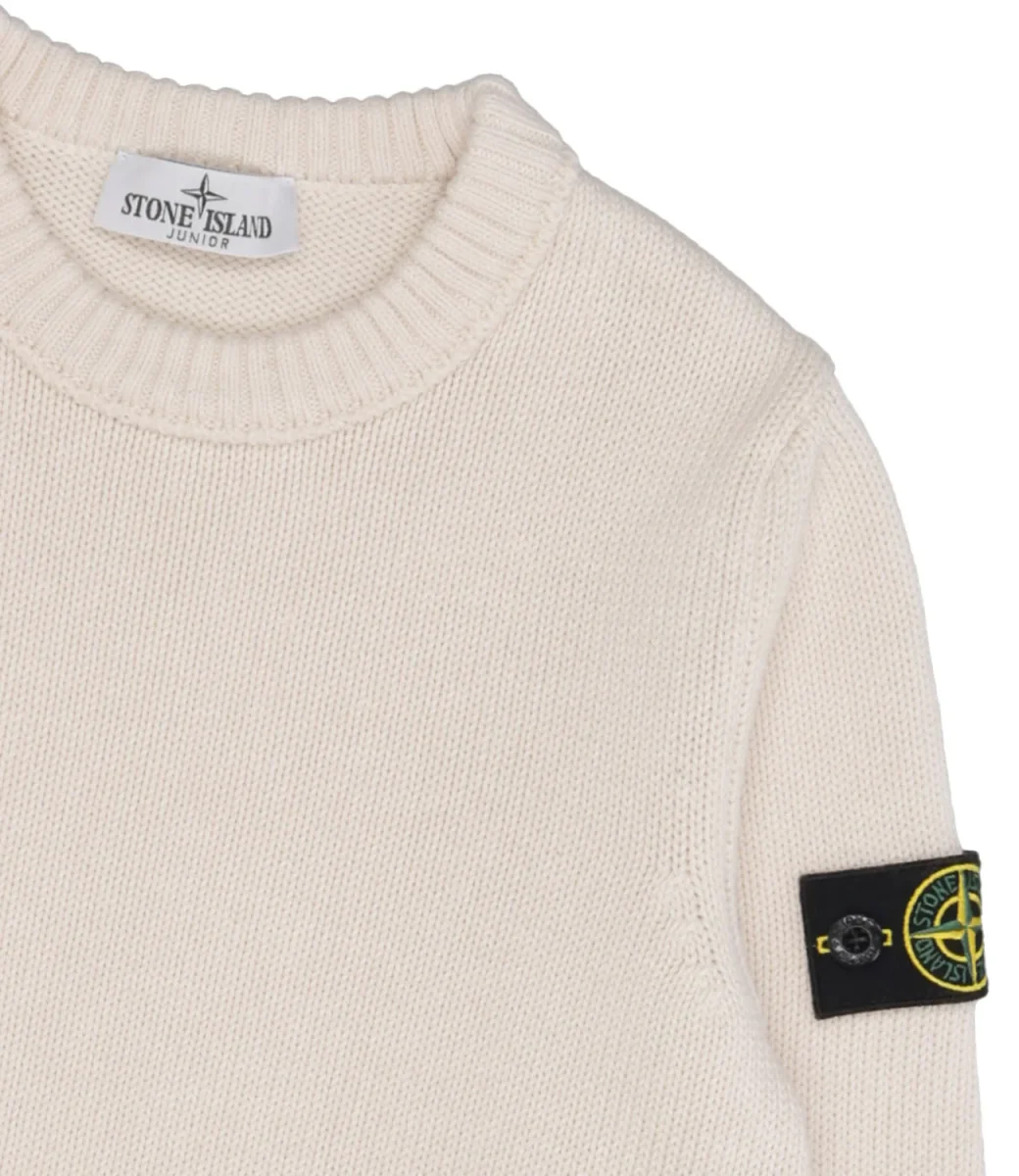 Maglia Stone Island Junior in misto cotone Finezza 5, girocollo, maniche con polsini e fondo con bordo a costine, logo sulla spalla sinistra.