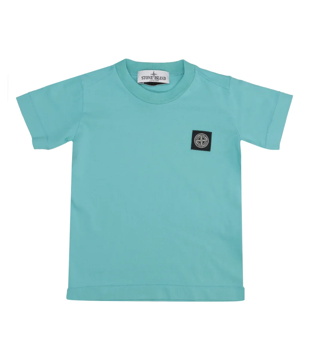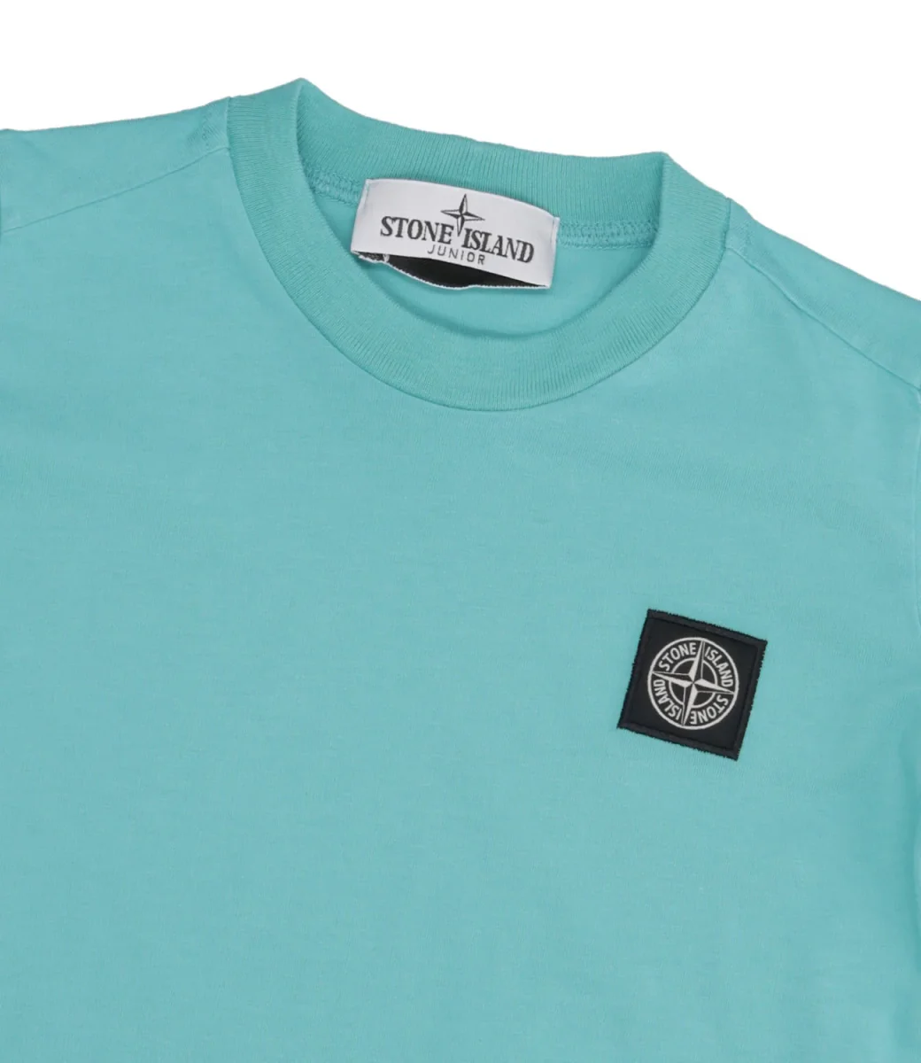 T-Shirt Stone Island Junior in leggero jersey di cotone, con scollo a costine e patch con logo Compass sul petto. Capo classico nel pieno stile del brand.