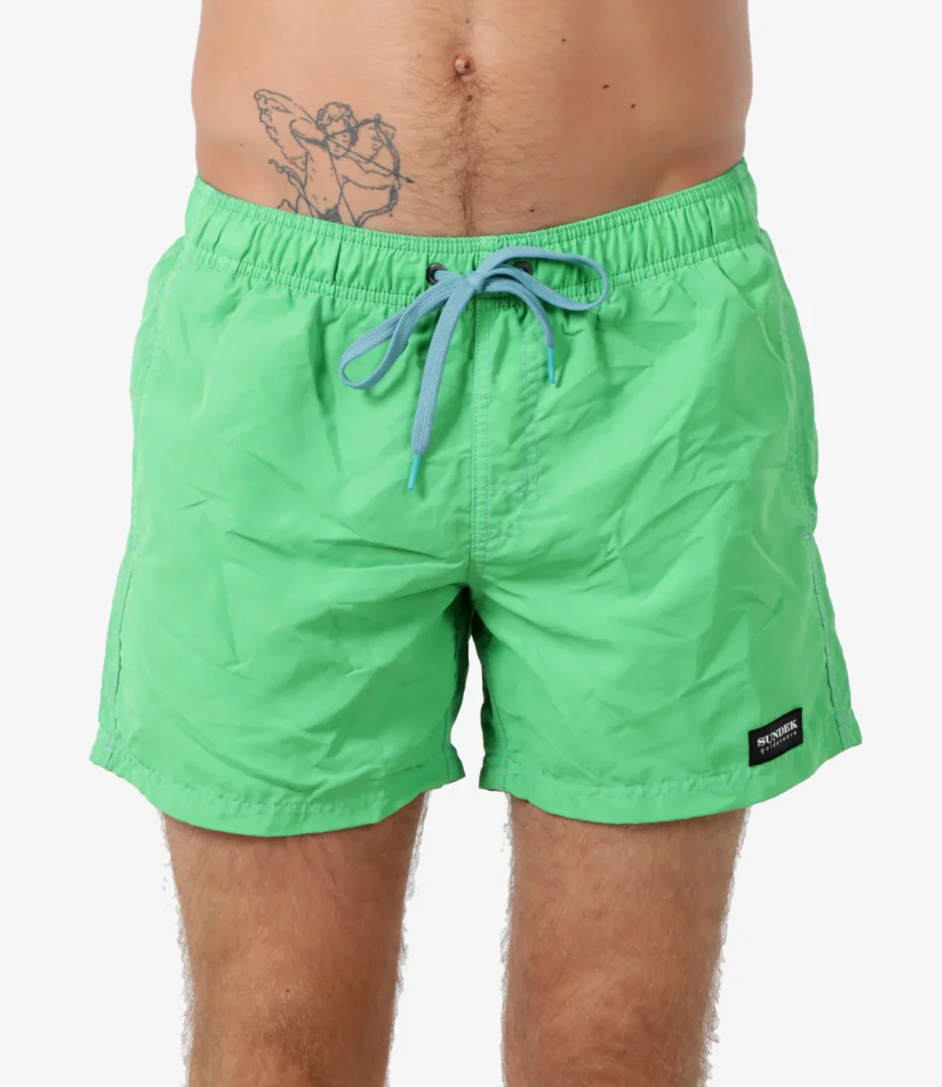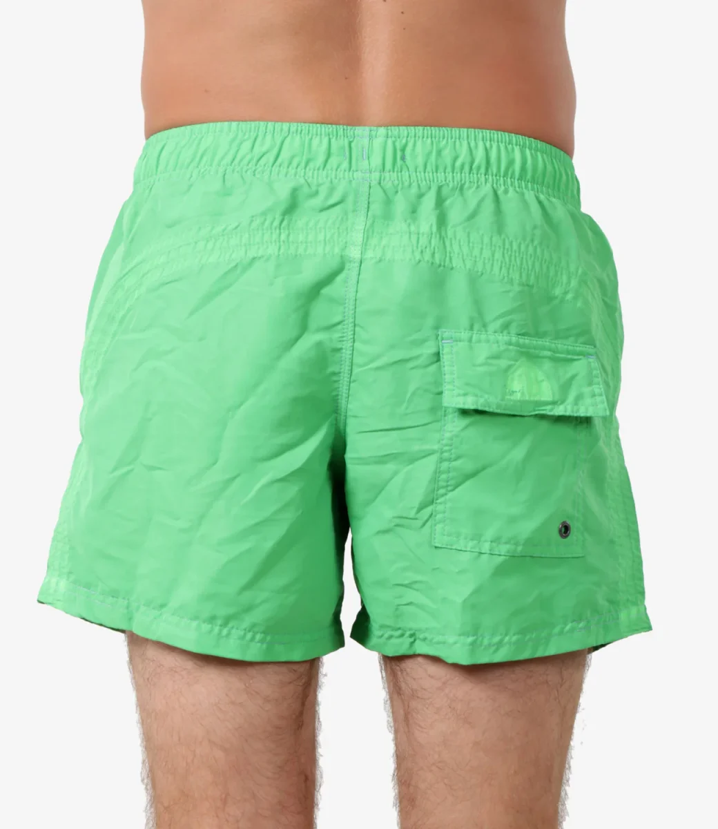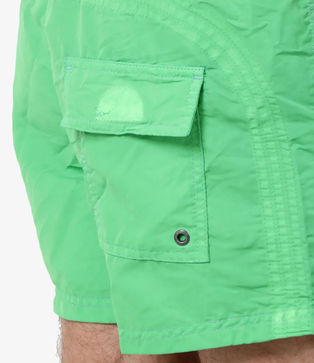 Costume Boxer Sundek Golden Overdyng Swim Trun in tessuto nylon-taffetà verde campione di performance perché si asciuga rapidamente, è resistente e non si rovina nel tempo, mantenendo inalterato colore e aspetto. Lavorazione ricercata per questo boardshort over dyed, con tintura che mette i dettagli iconici del brand in evidenza. Il tessuto storico e la costruzione del modello lo rende super resistente stagione dopo stagione.