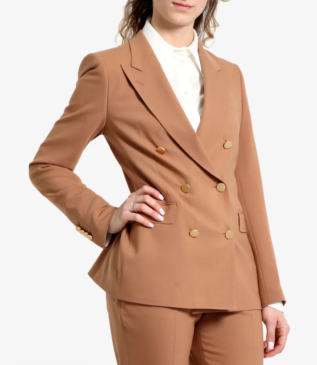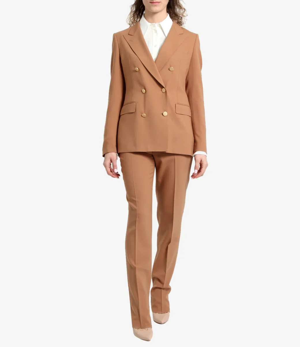 Completo due pezzi Tagliatore modello doppiopetto con bottoni dorati, revers calssici e tasca a filetto sul petto.