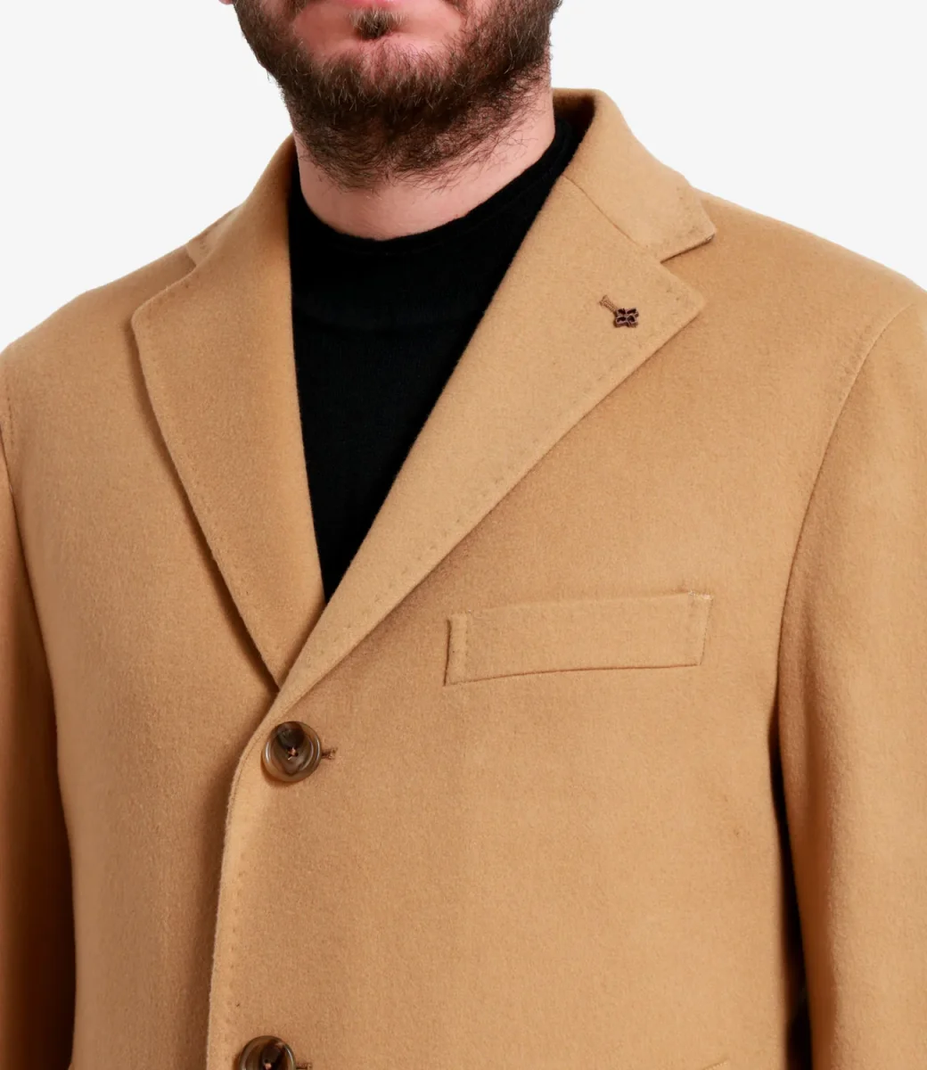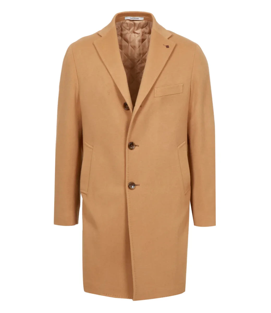 Cappotto Tagliatore in misto lana e kashmir, modello monopetto, revers stretto con asola e gioiello sul lato sinistro, bottoni tono su tono, fodera interna, taschino sul petto lato sinistro, maniche lunghe con spacchi e bottoni sul polsino, tasche con patta, lunghezza media.