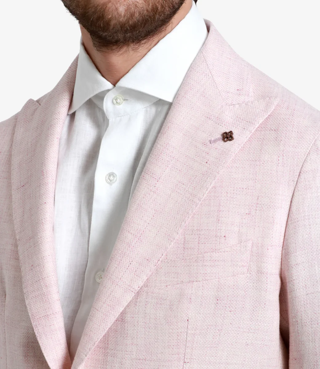 Giacca Tagliatore è sinonimo di eleganza e classe. In misto lino e lana rosa. Un must-have che ogni uomo dovrebbe avere nel suo armadio.