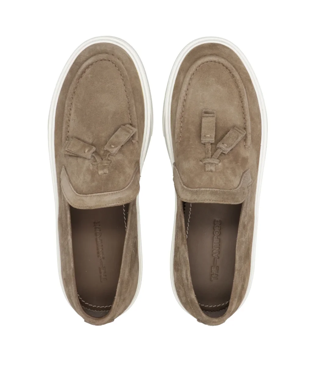 Slip on The-Antipode in camoscio con nappine. Suola in gomma. Tomaia interna in pelle.