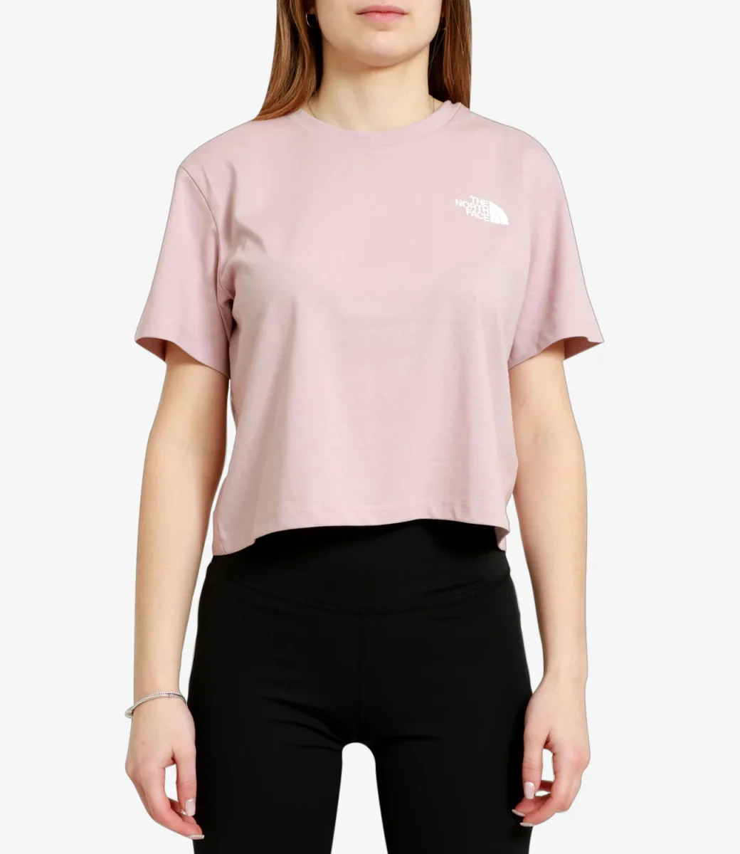 T-Shirt The North Face Logowear Tops Cropped in misto cotone rosa, modello cropped dalla vestibilità rilassata, girocollo, maniche corte, logo The North Face® sul davanti.