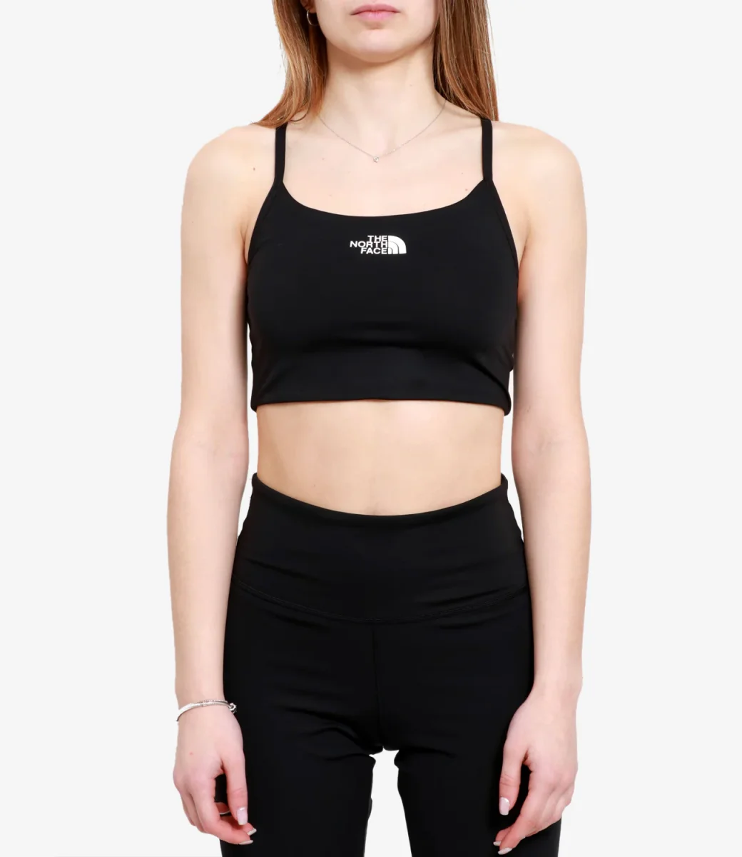 Top The North Face Flex Bra realizzato in tessuto FlashDry™ brevetto che mantiene la tua pelle asciutta, allontana il sudore e l’umidità. Design studiato per un sostegno leggero con spalline sottili regolabili. e fascia elasticizzata interna per migliorare il comfort negli allenamenti.