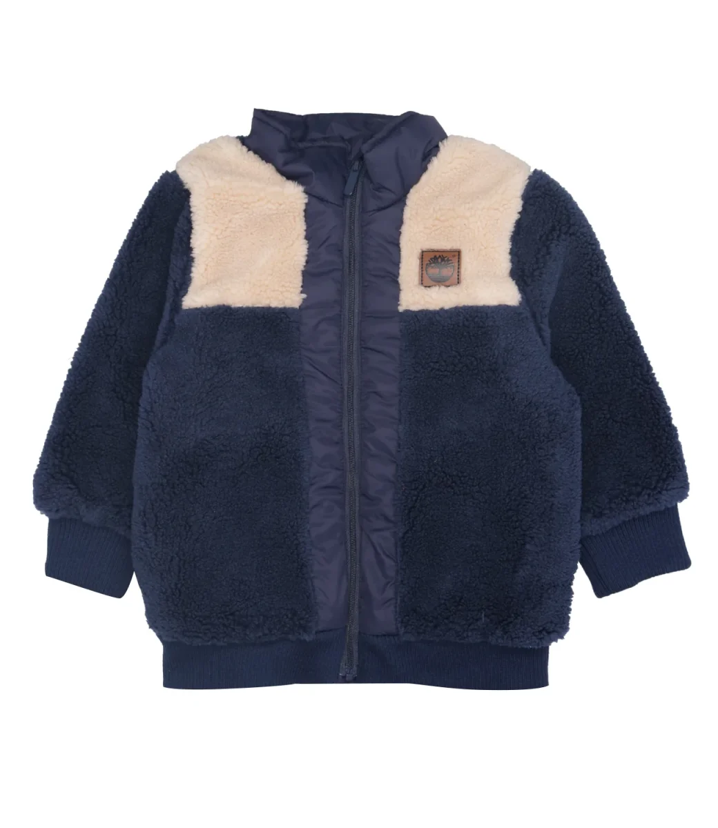 Giubotto Timberland Kids realizzato in morbido pile teddy con inserti in tessuto tecnico. Modello con girocollo, chiusura con zip e copri zip sottogola, maniche lunghe con polsini, logo applicato sul petto al lato sinistro.
