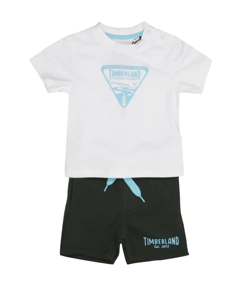 Set t-shirt e bermuda Timberland Kids in cotone per i più piccoli perfetto per l’estate, garantisce libertà di movimento in ogni occasione.