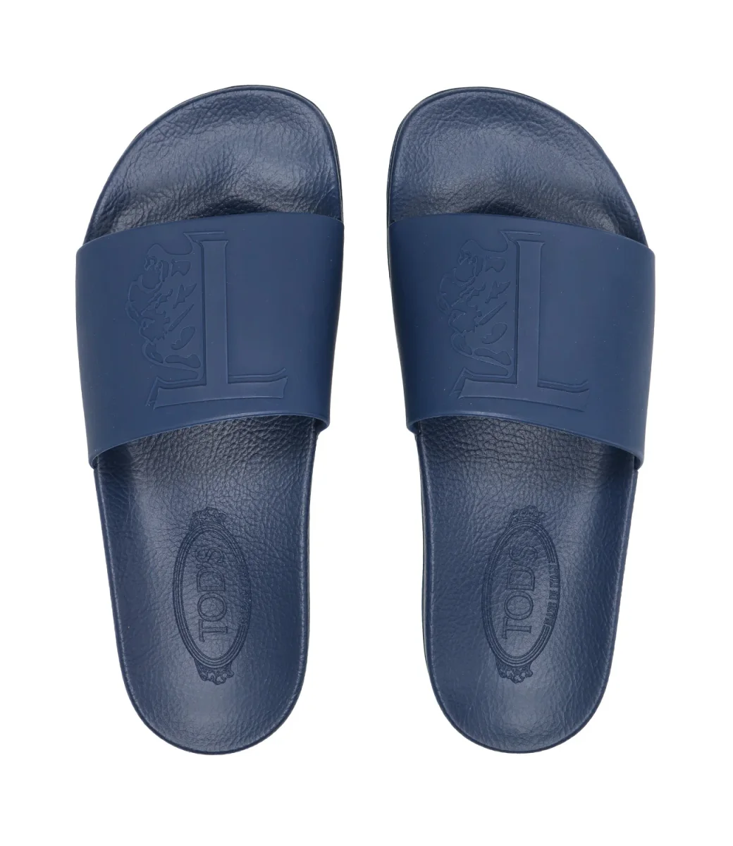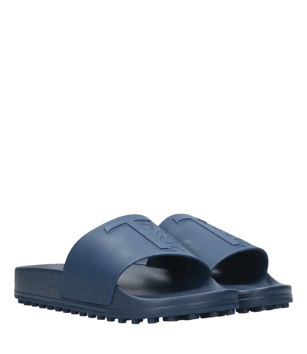 Ciabatte a fascia in gomma con logo in rilievo tono su tono.