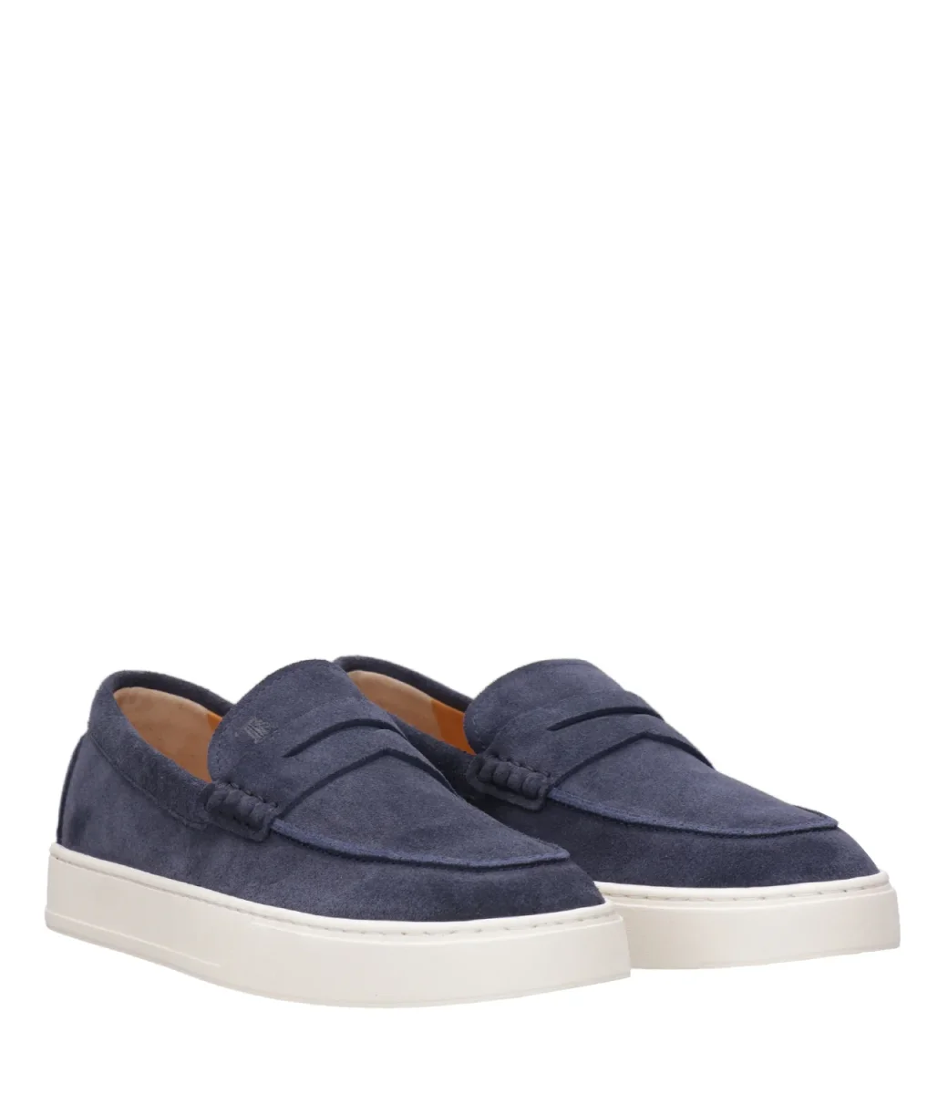 Mocassino Tod’s realizzato in pelle scamosciata, linguetta con monogramma Tod’s impresso, suola in gomma con scanalature e gommini a rilievo