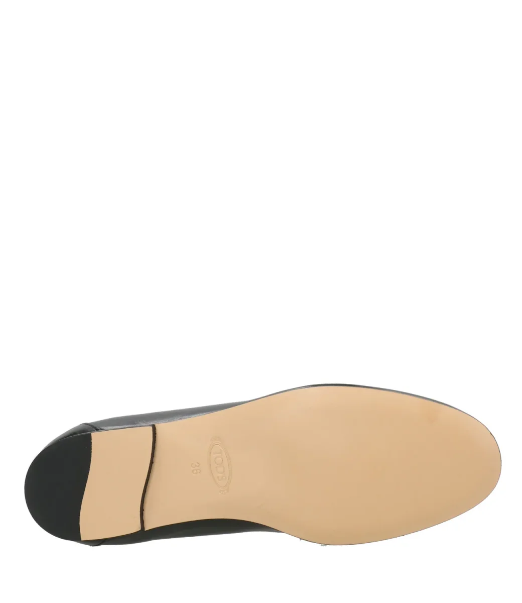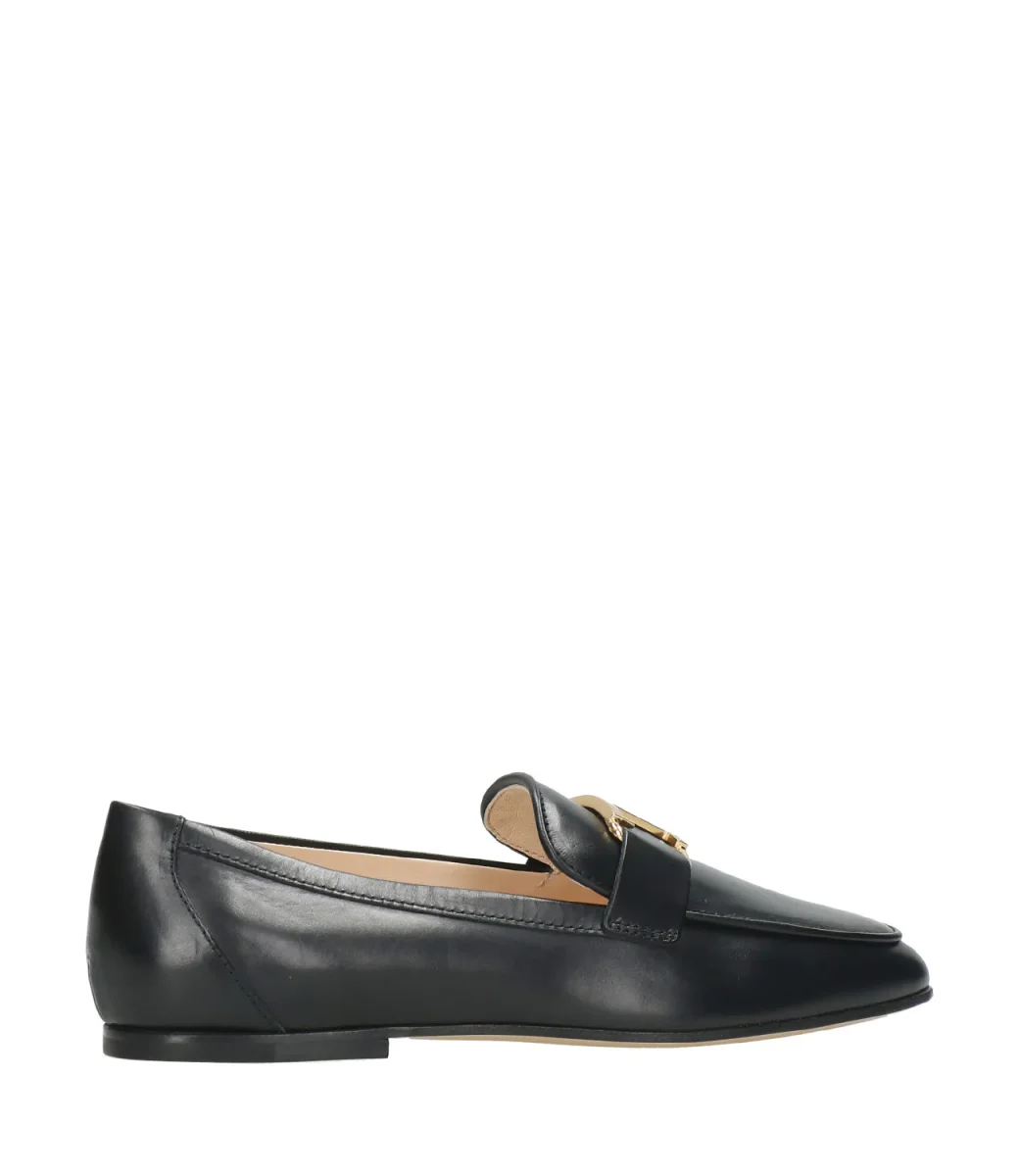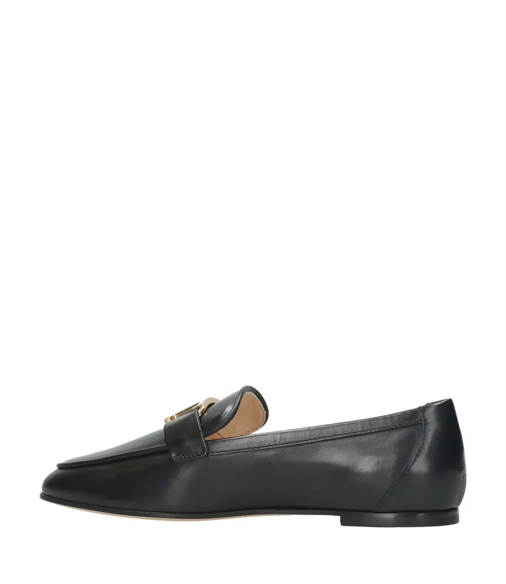 Pantofola Tod’s in raffinata pelle nera spazzolata dalla finitura sfumata con accessorio a catena in metallo personalizzato e suola in cuoio.