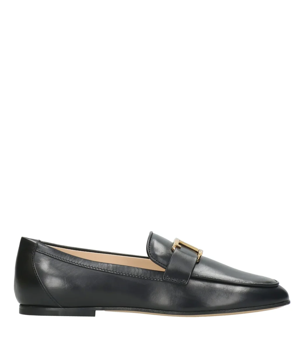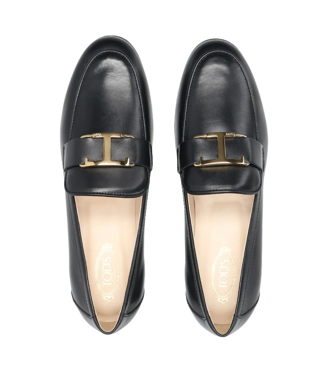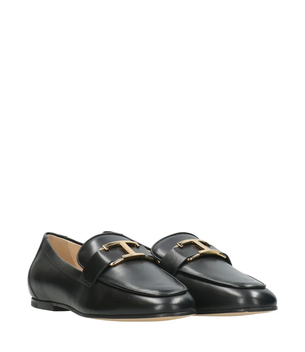 Pantofola Tod’s in raffinata pelle nera spazzolata dalla finitura sfumata con accessorio a catena in metallo personalizzato e suola in cuoio.