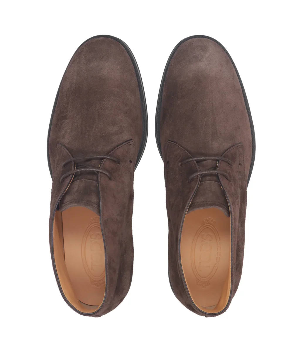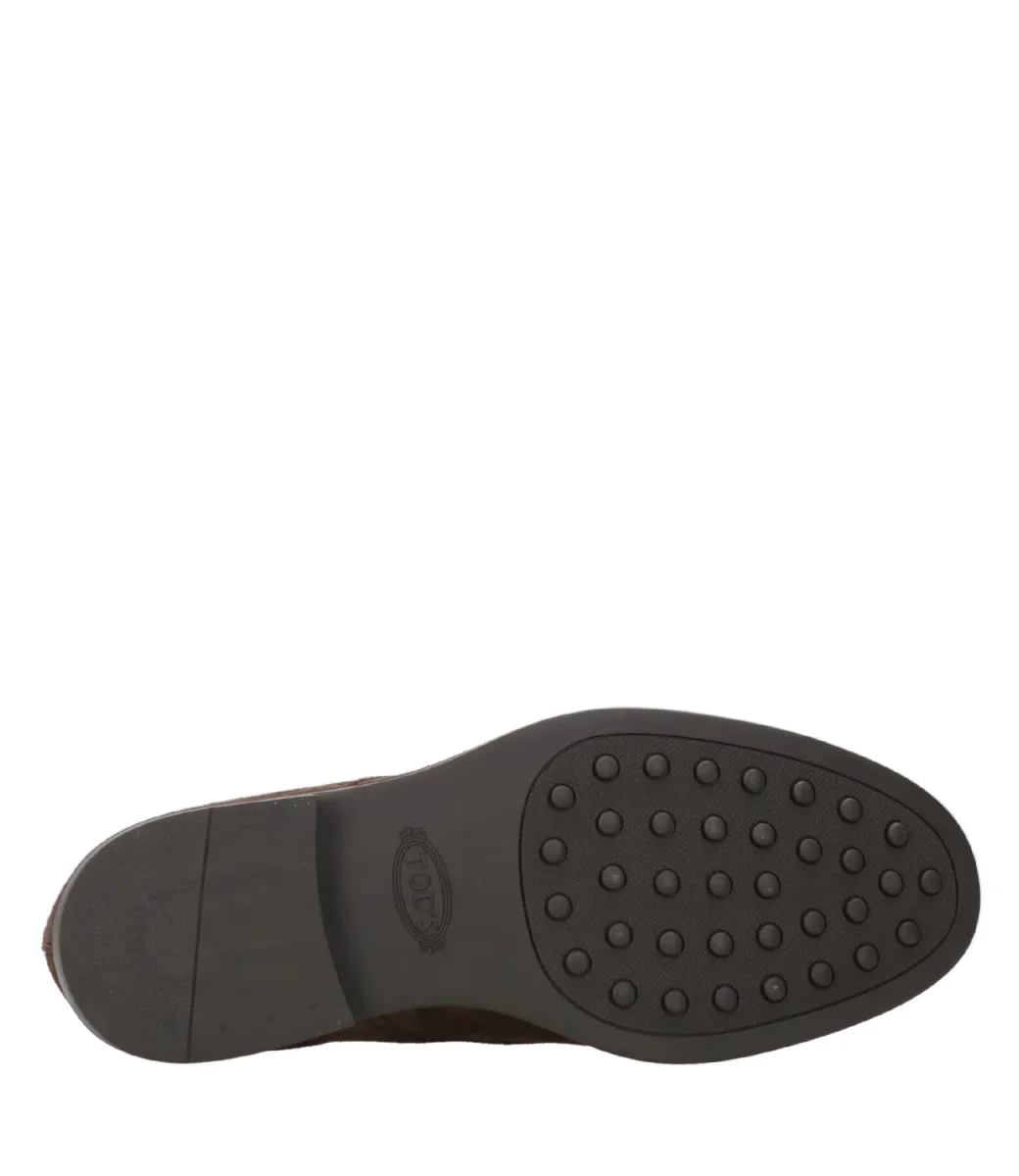 Polacco Tod’s un design evergreen essenziale e raffinato, realizzato in pelle di vitello scamosciata, con monogramma Tod’s impresso con suola in gomma e gommini a rilevo.