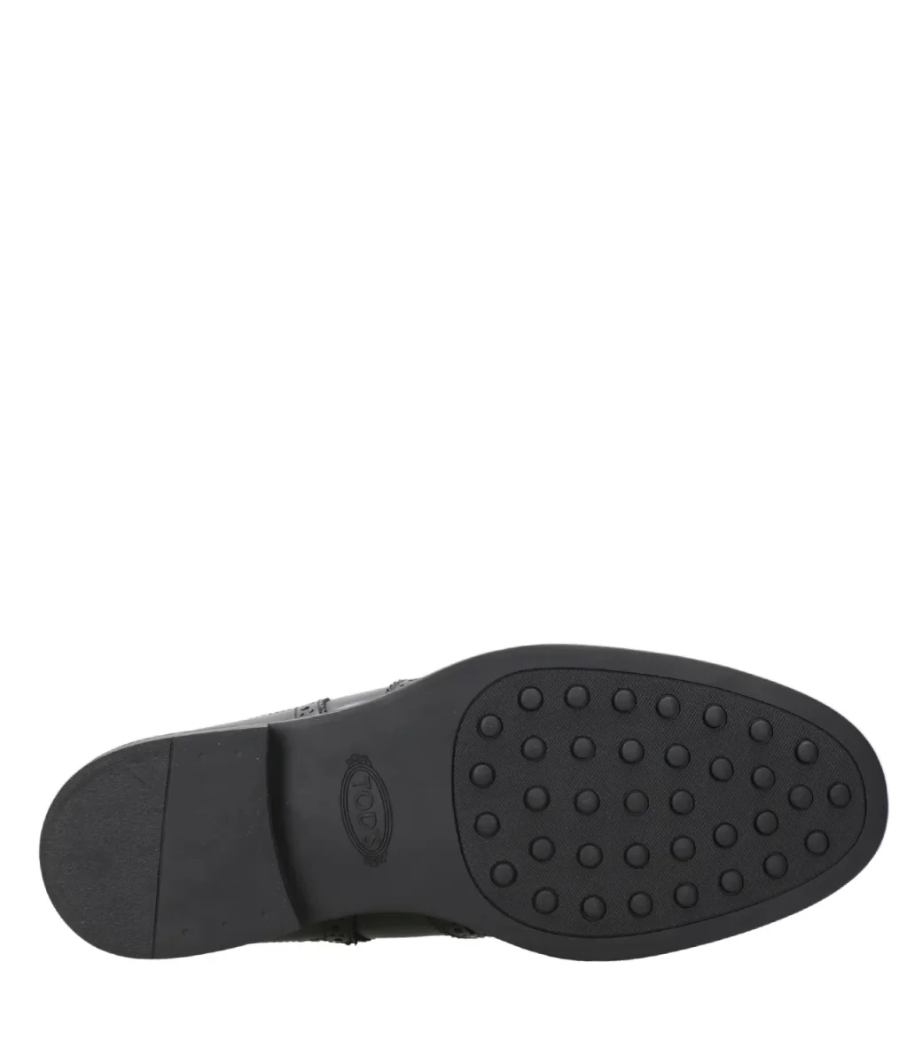 Scarpa Tod’s in pelle di vitello, elegante ed iconica lavorazione con dettagli forati e coda di rondine seguita dalla suola in gomma con distintivi dettagli a rilievo. Monogramma Tod’s impresso sul davanti.