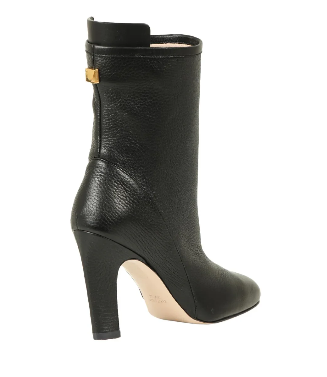 Gli stivali morbidi hanno una sensibilità scultorea grazie al tacco a blocco angolato. Gli stivali Brooks a metà polpaccio sono dotati di un gambale in pelle progettato per adattarsi grazie alla vestibilità morbida o affusolata. Sono rifiniti con una linguetta oversize in pelle sul retro e la esclusiva borchia quadrata in metallo
