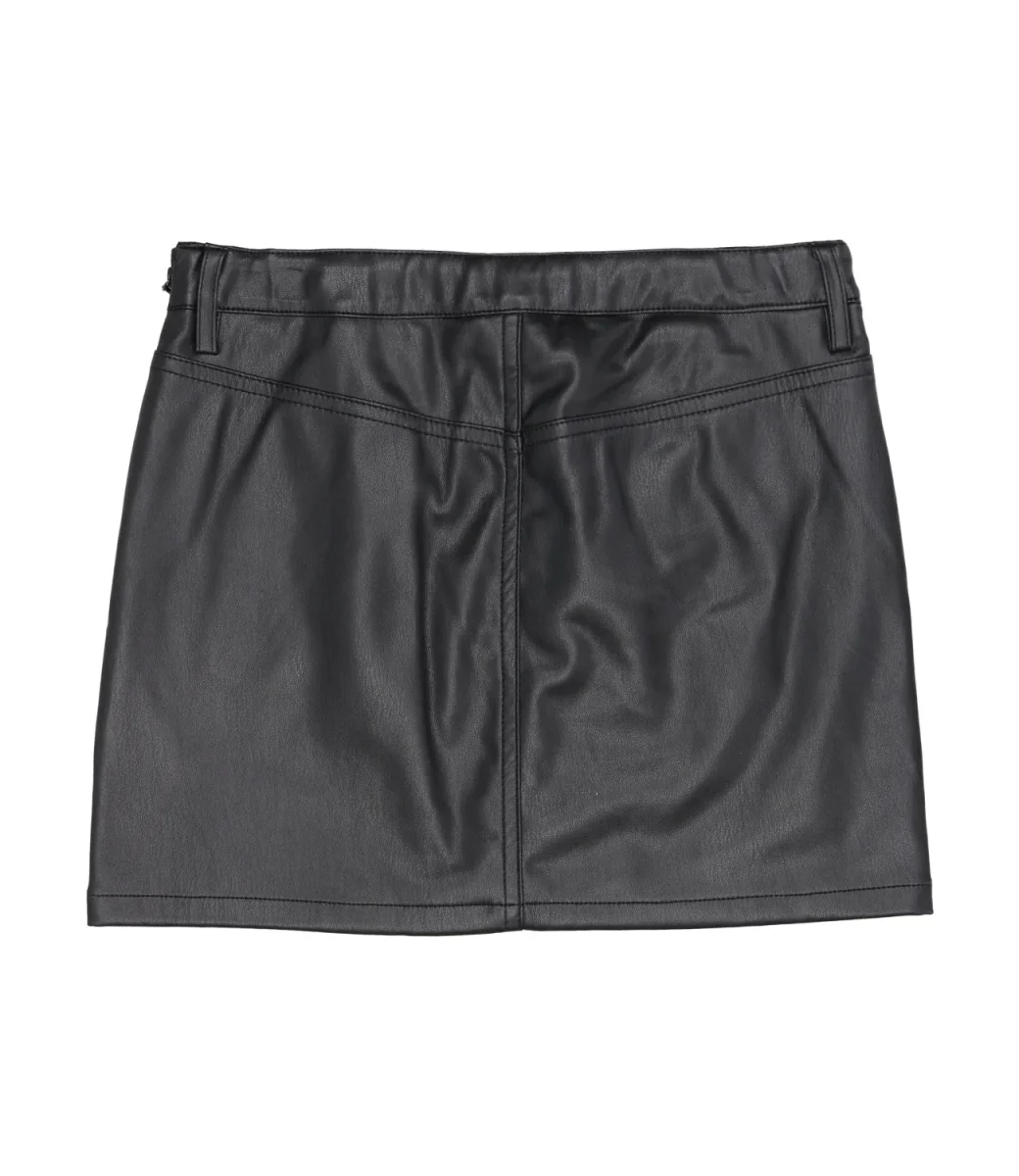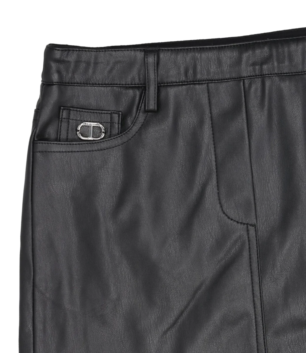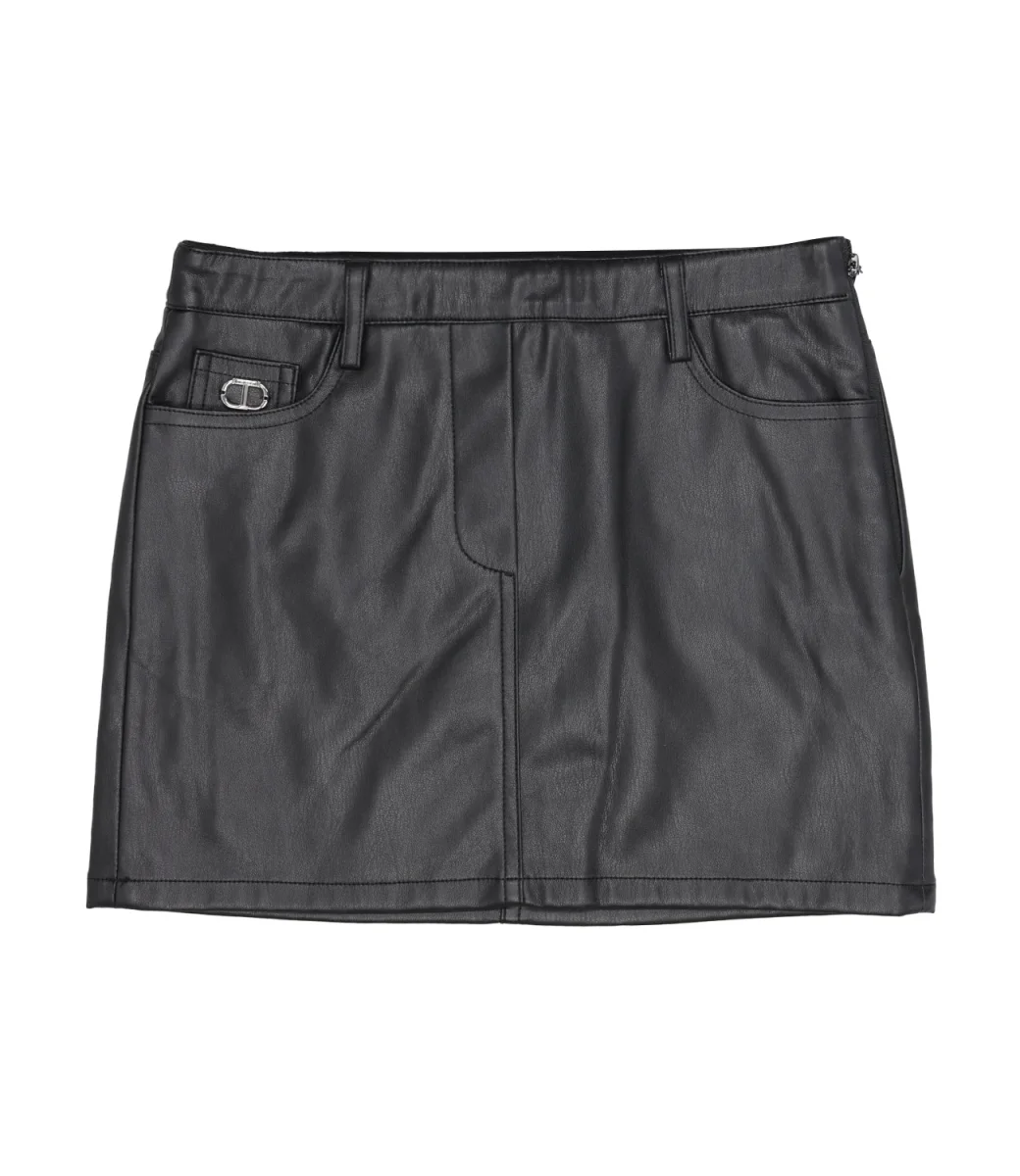 Gonna Twinset in ecopelle, modello corto con cinque tasche, oval D T Twinset in metallo applicato sulla taschina sul davanti, chiusura laterale con zip a scomparsa, vita con passanti