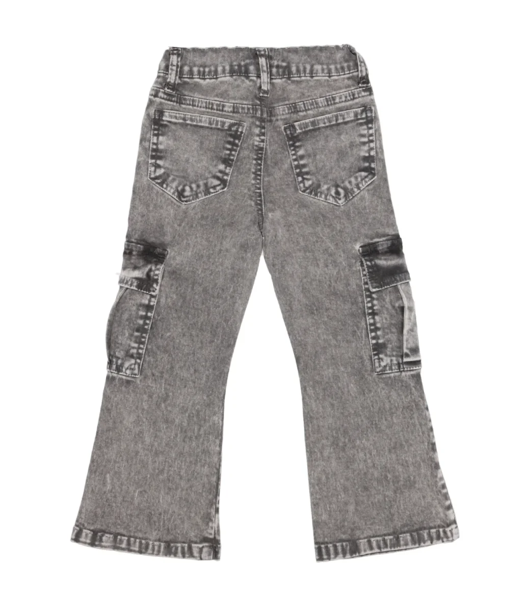 – Tasche con patta applicate sui laterali esterni delle gambe