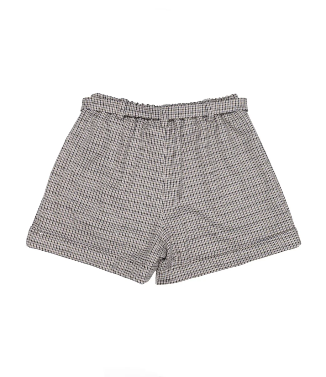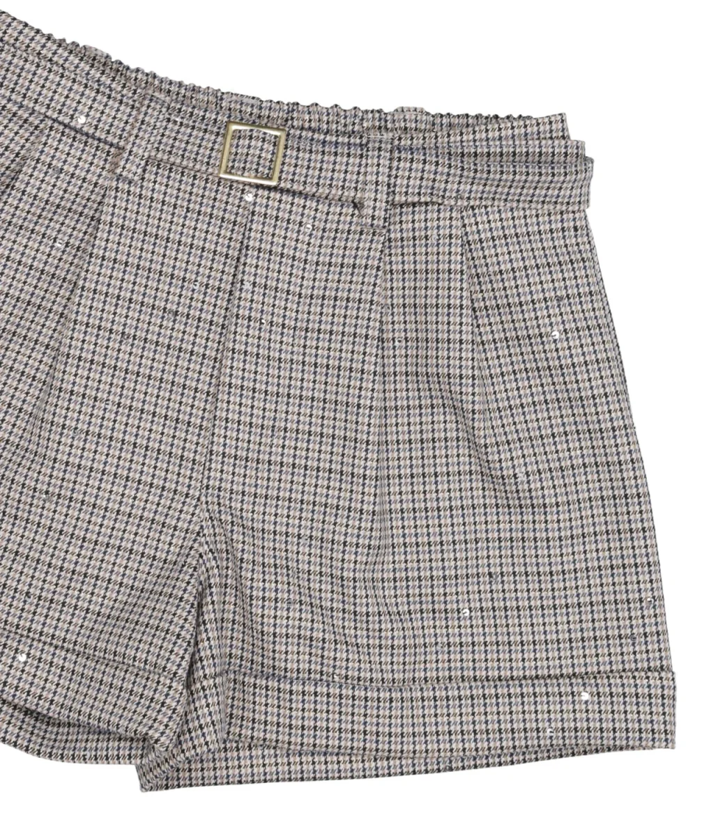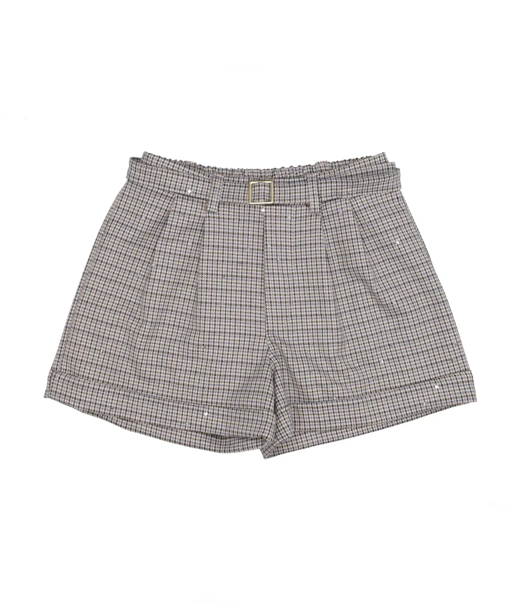 Shorts U+é By Miss Grant modello realizzato in tessuto di viscosa con motivo pied de poule, dalla silhouette elegante, gamba dalla vestibilità ampia e risvolto al fondo.