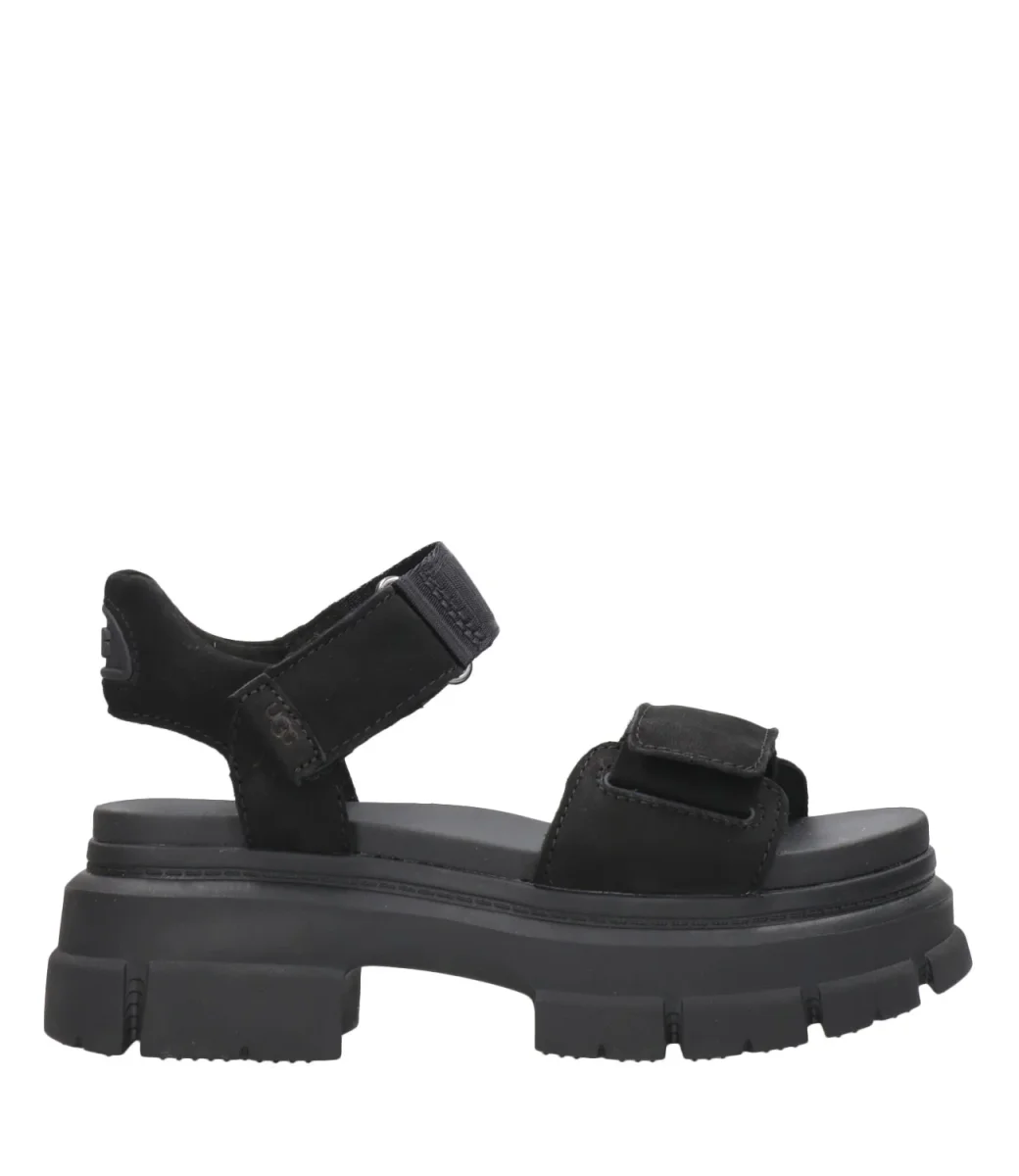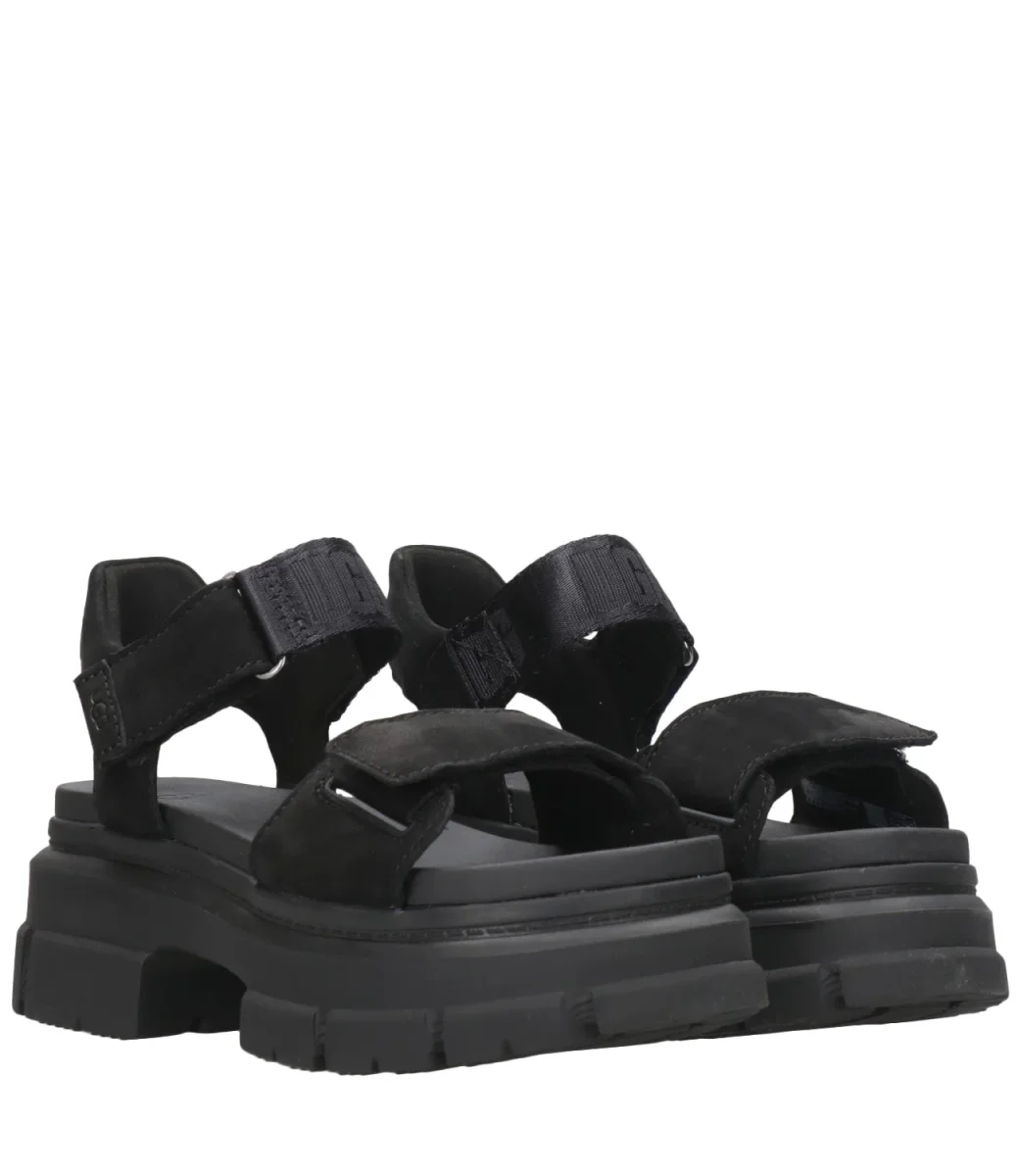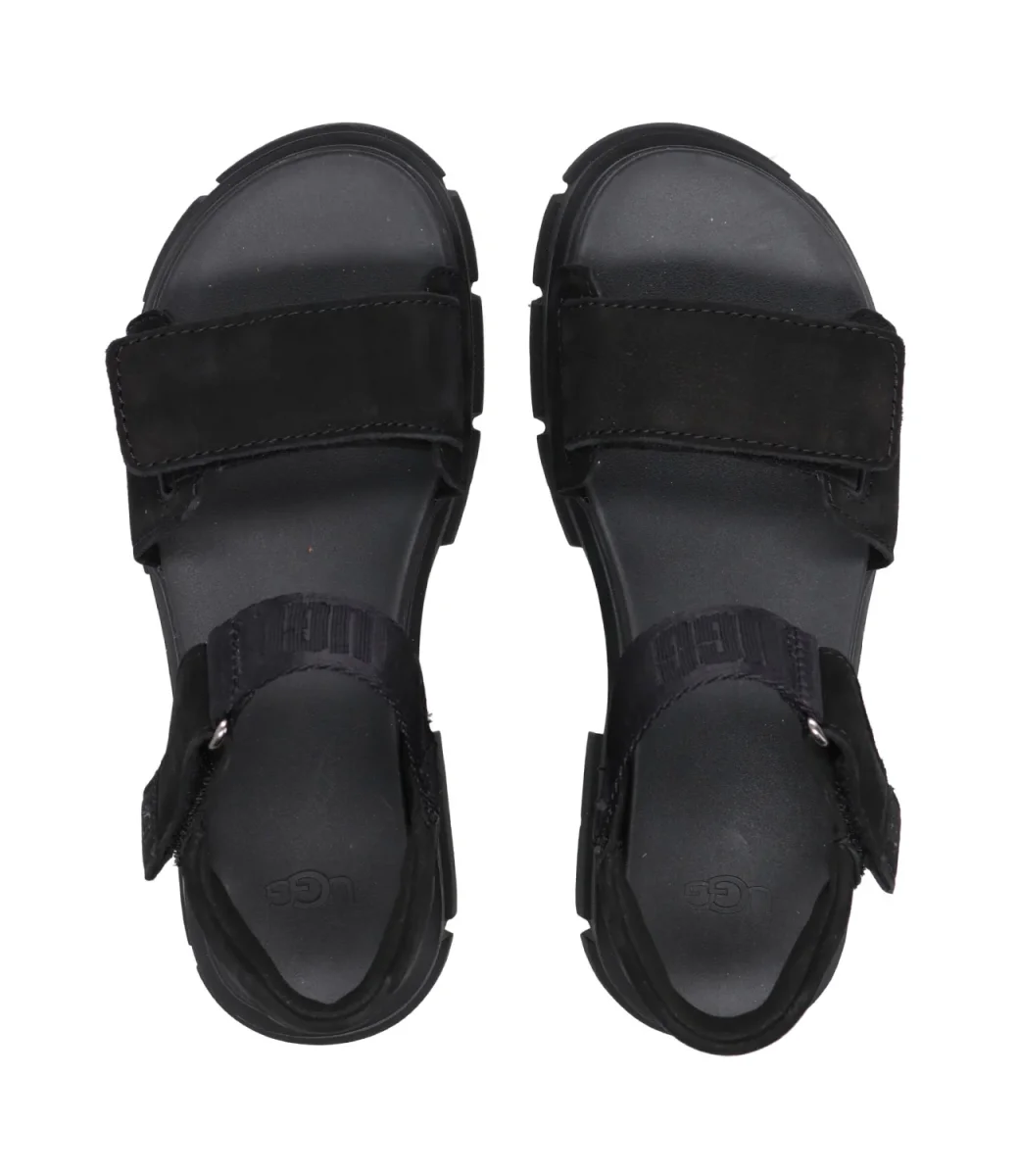 Ciabatta UGG in suede con cinturino regolabile con velcro.