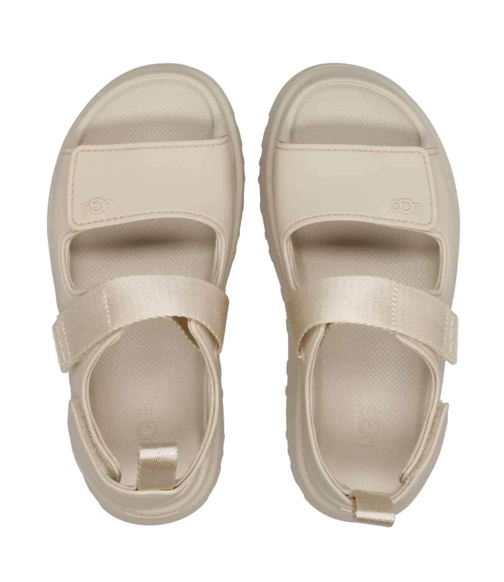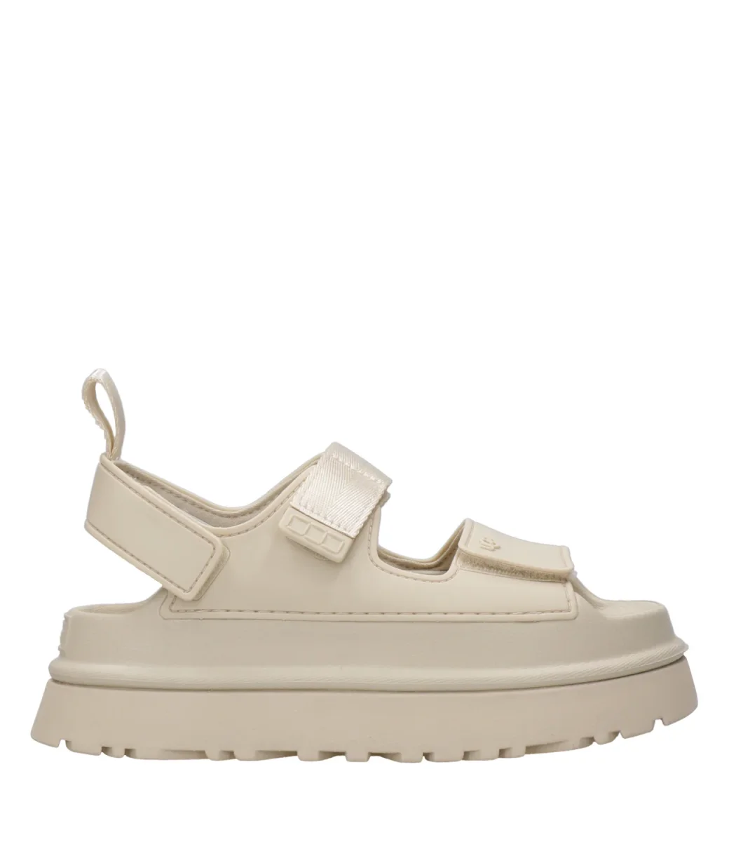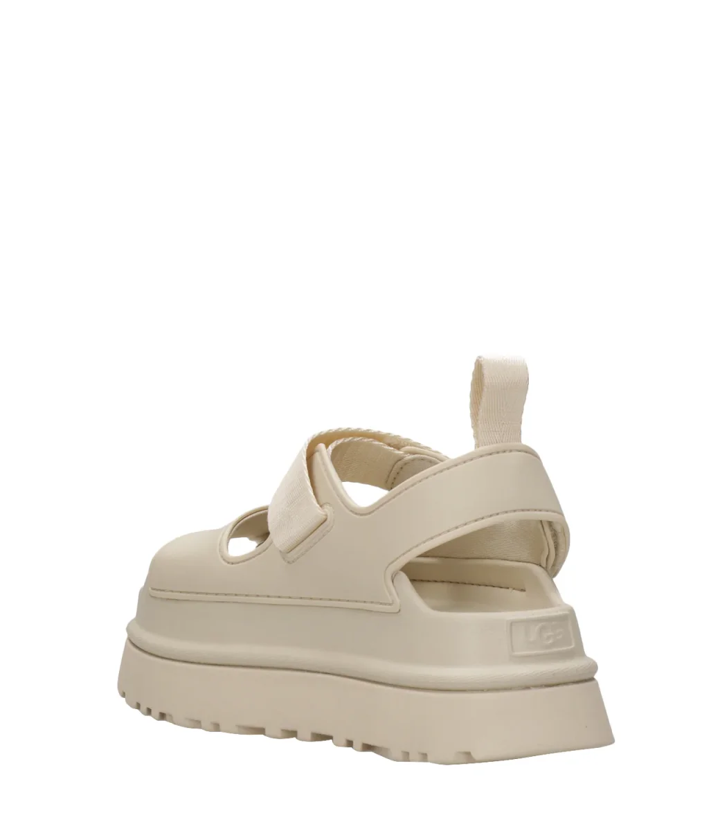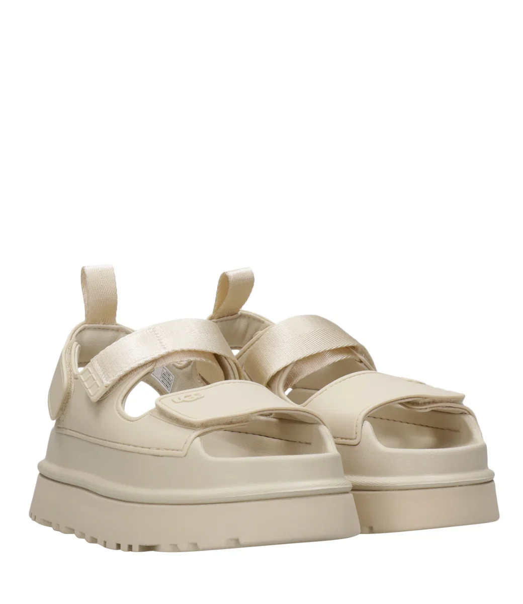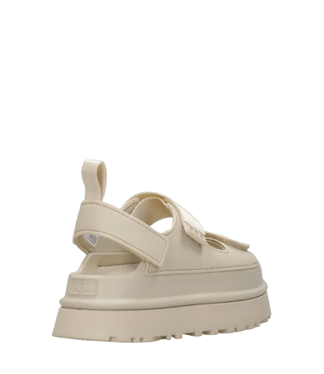 Sandalo UGG Goldenglow linea audace e pratica grazie alla sua leggerezza e comfort nei dettagli. Modello realizzato in EVA da canna da zucchero. Plateau con suola a carrarmato.