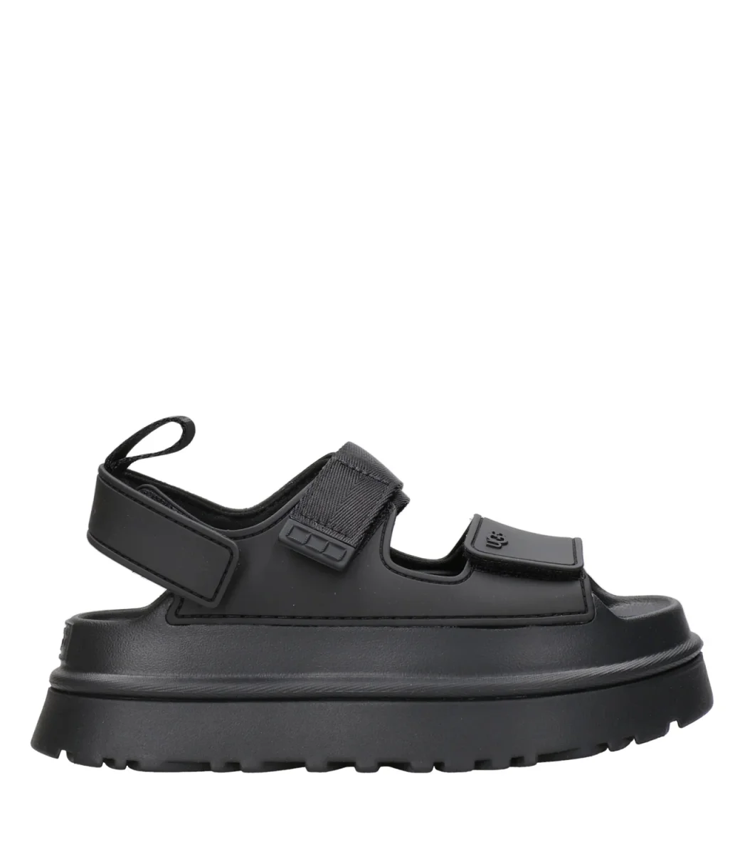 Sandalo UGG Goldenglow linea audace e pratica grazie alla sua leggerezza e comfort nei dettagli. Modello realizzato in EVA da canna da zucchero. Plateau con suola a carrarmato.