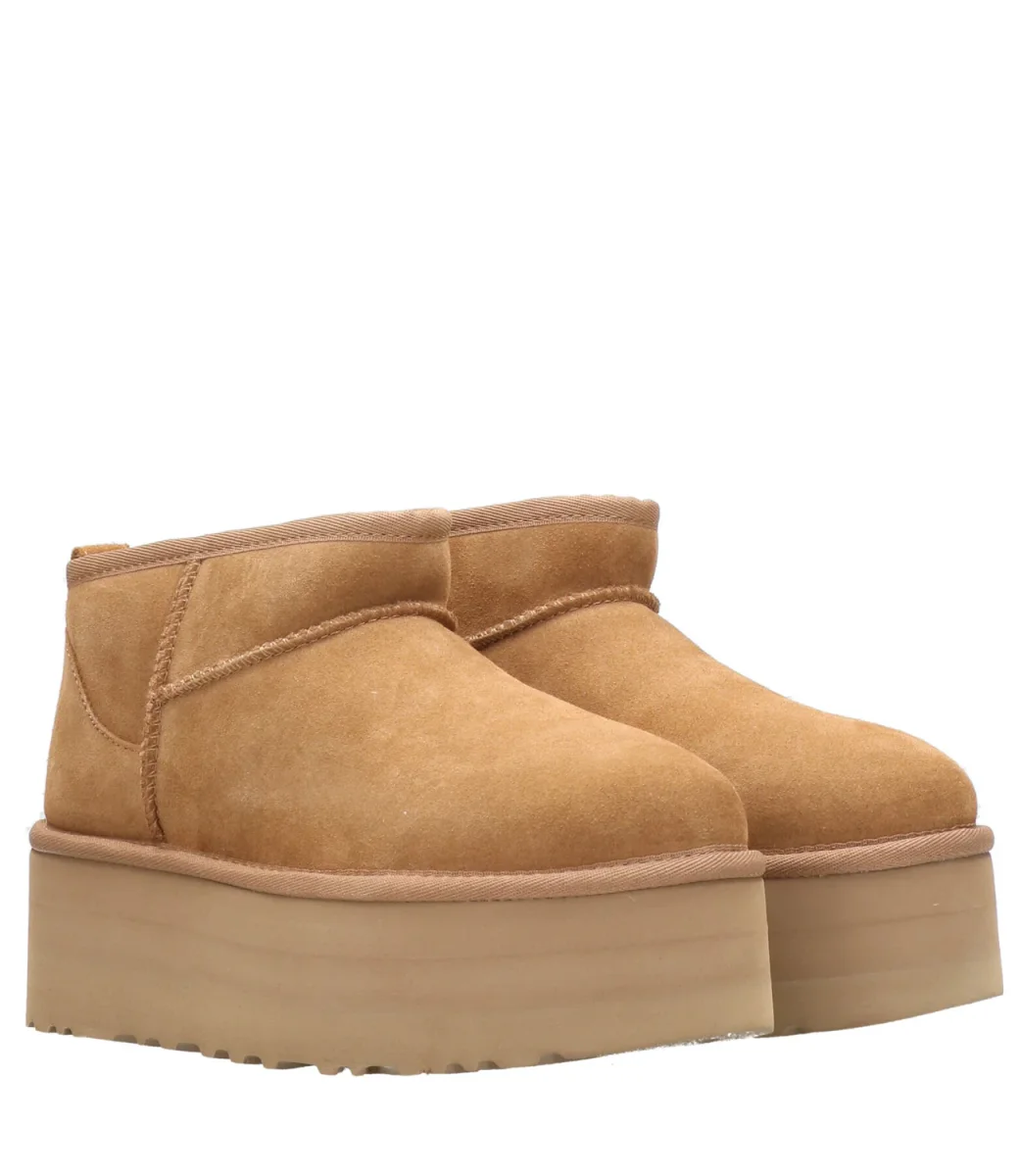 Tronchetto UGG modello W Classic Ultra Mini Platform, tra i modelli più amati del brand. Realizzato in pregiata pelle scamosciata, foderato in misto UGGplush™ per una morbidezza estrema, suola in EVA Treadlite by UGG™.