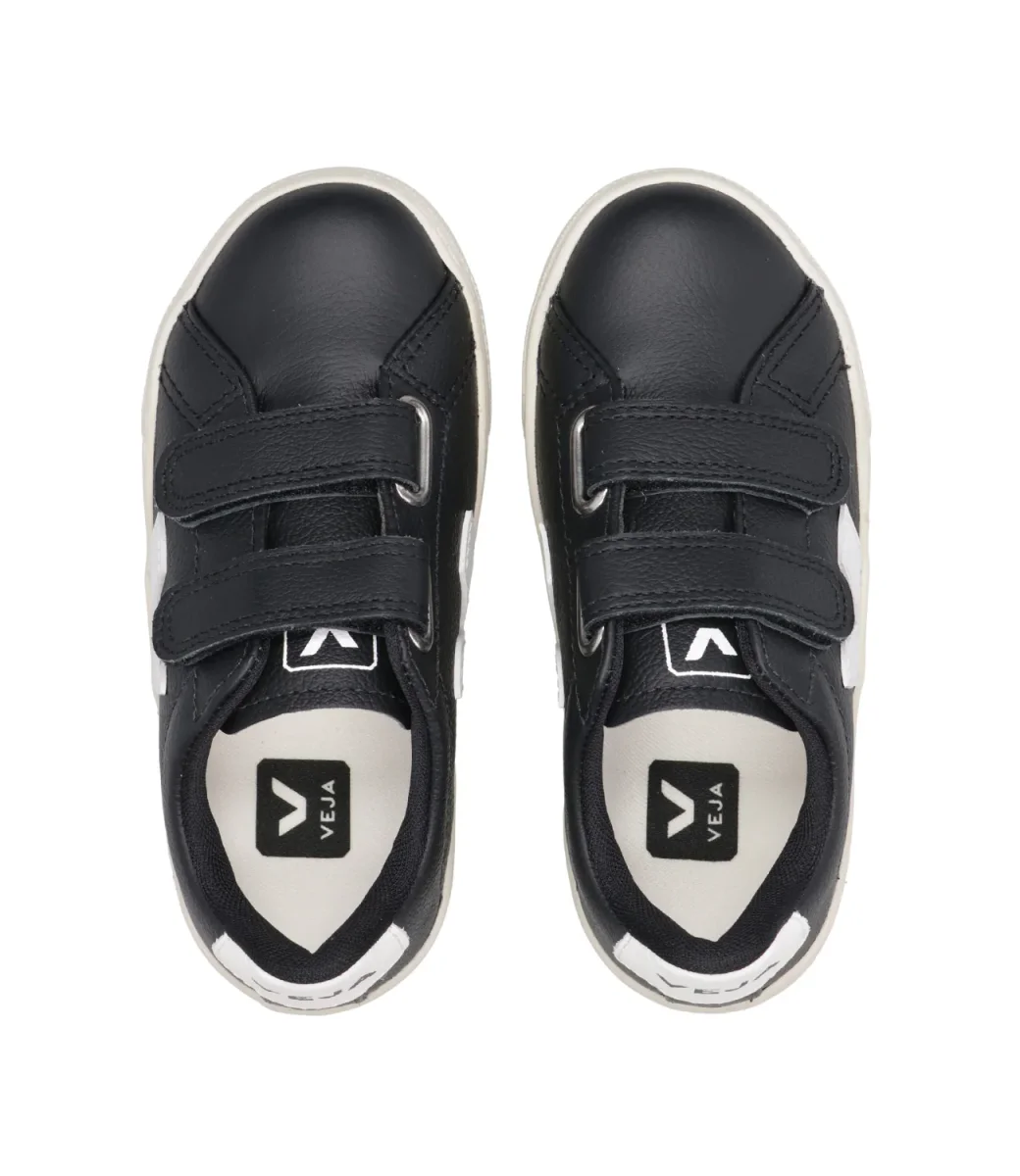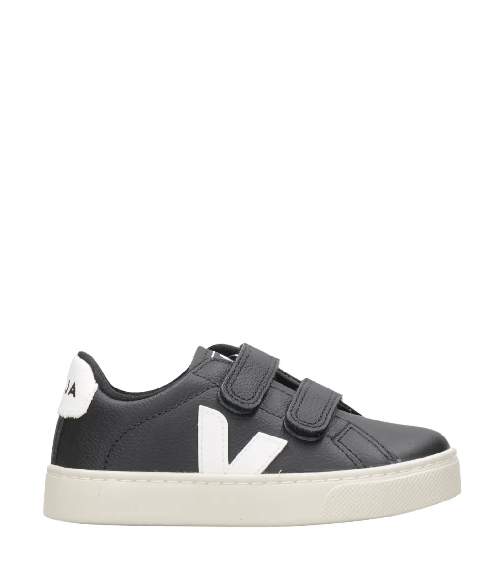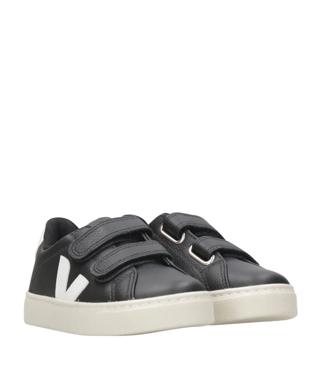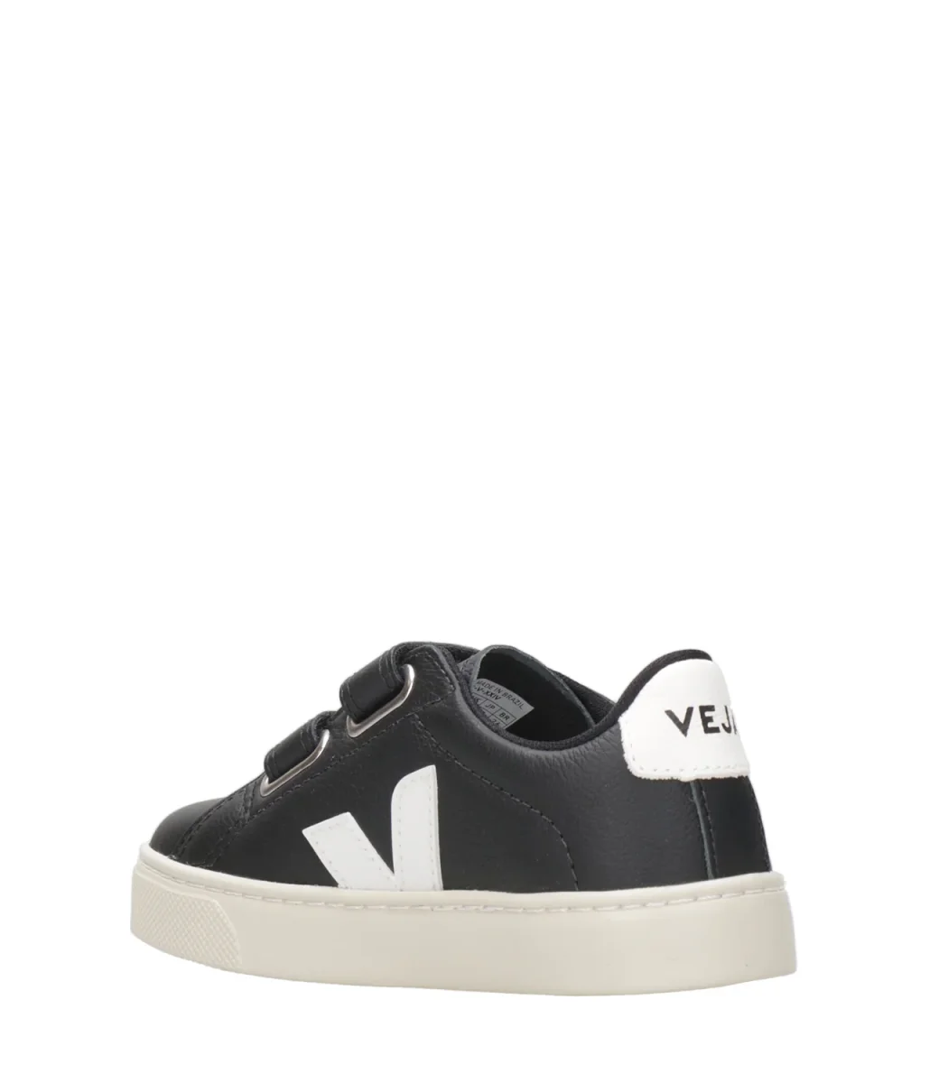 Sneakers Veja Kids Esplar realizzata in pelle bovina senza cromo, linguetta logata, chiusura con velcro, topponcino retro caviglia con logo, logo in rilievo cucito sul laterale, soletta in canna da zucchero e cotone biologico, suola in caucciù dell’Amazzonia