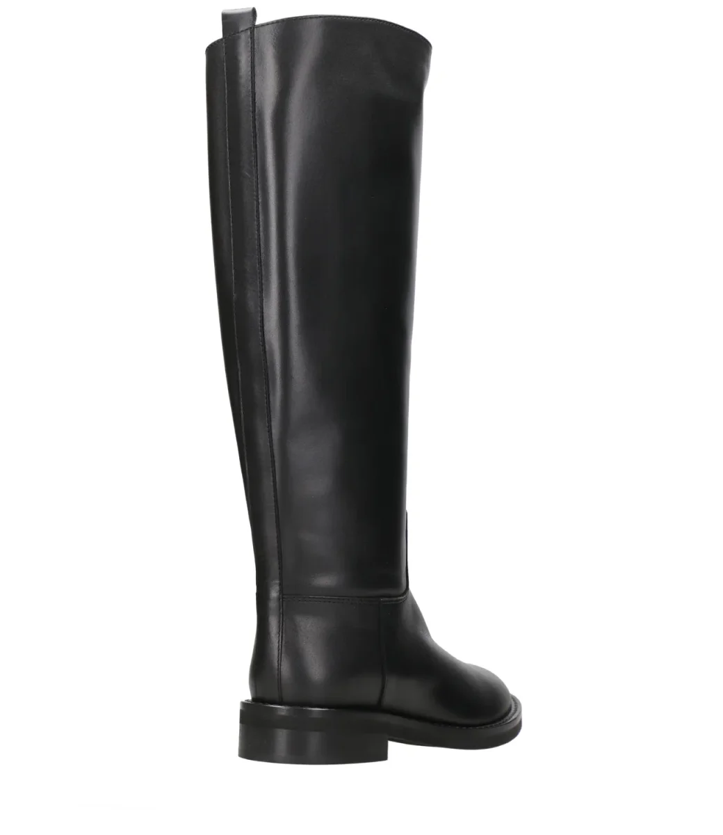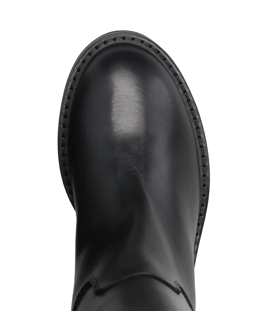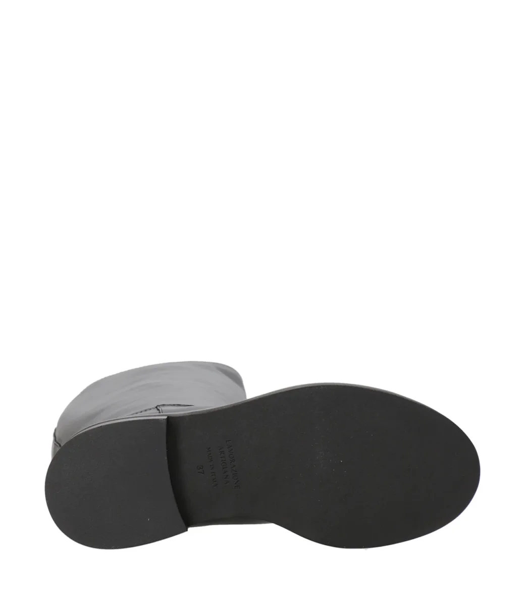 Stivale Via Roma 15 in pelle liscia, dettaglio al bordo con finitura stondata, punta arrotondata, suola e tacco a strati.