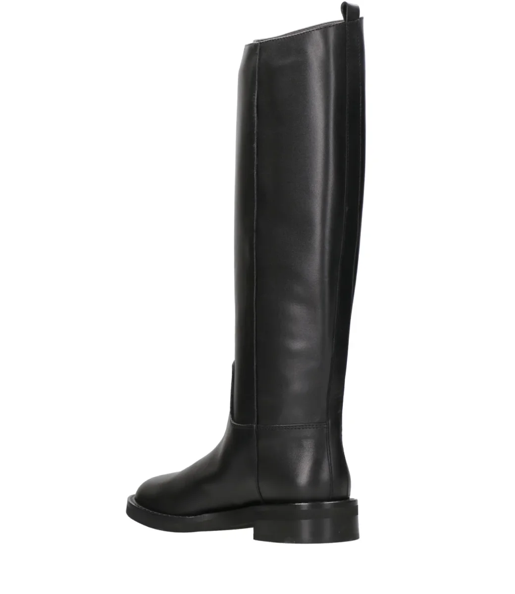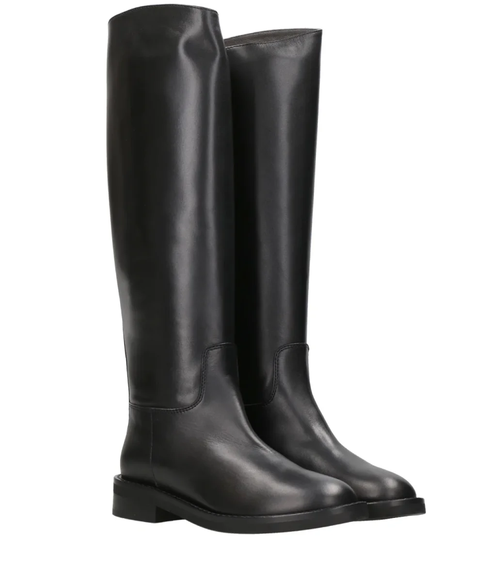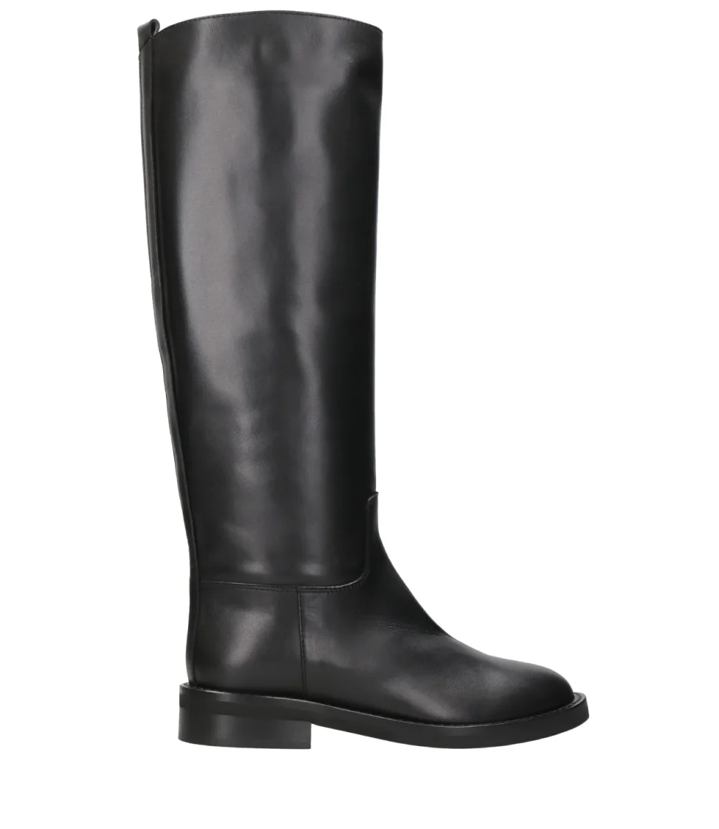 Stivale Via Roma 15 in pelle liscia, dettaglio al bordo con finitura stondata, punta arrotondata, suola e tacco a strati.