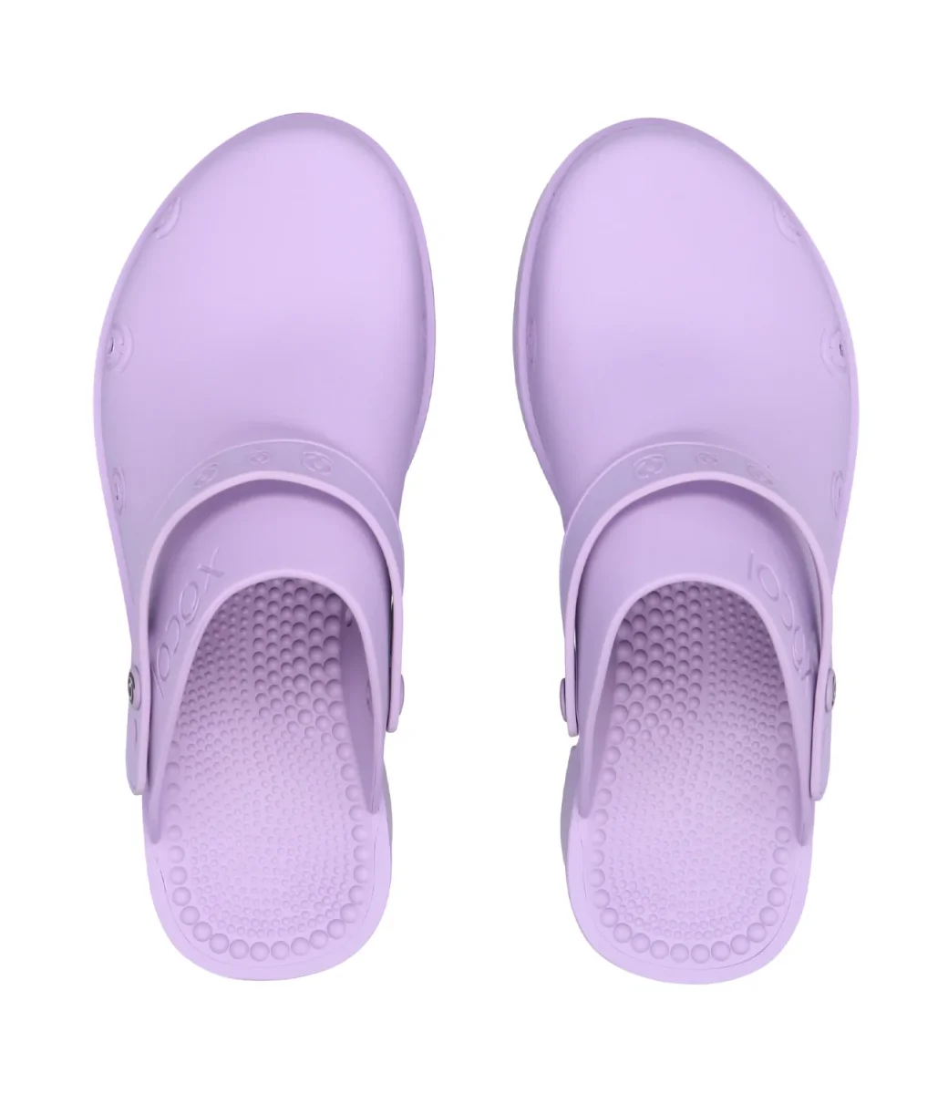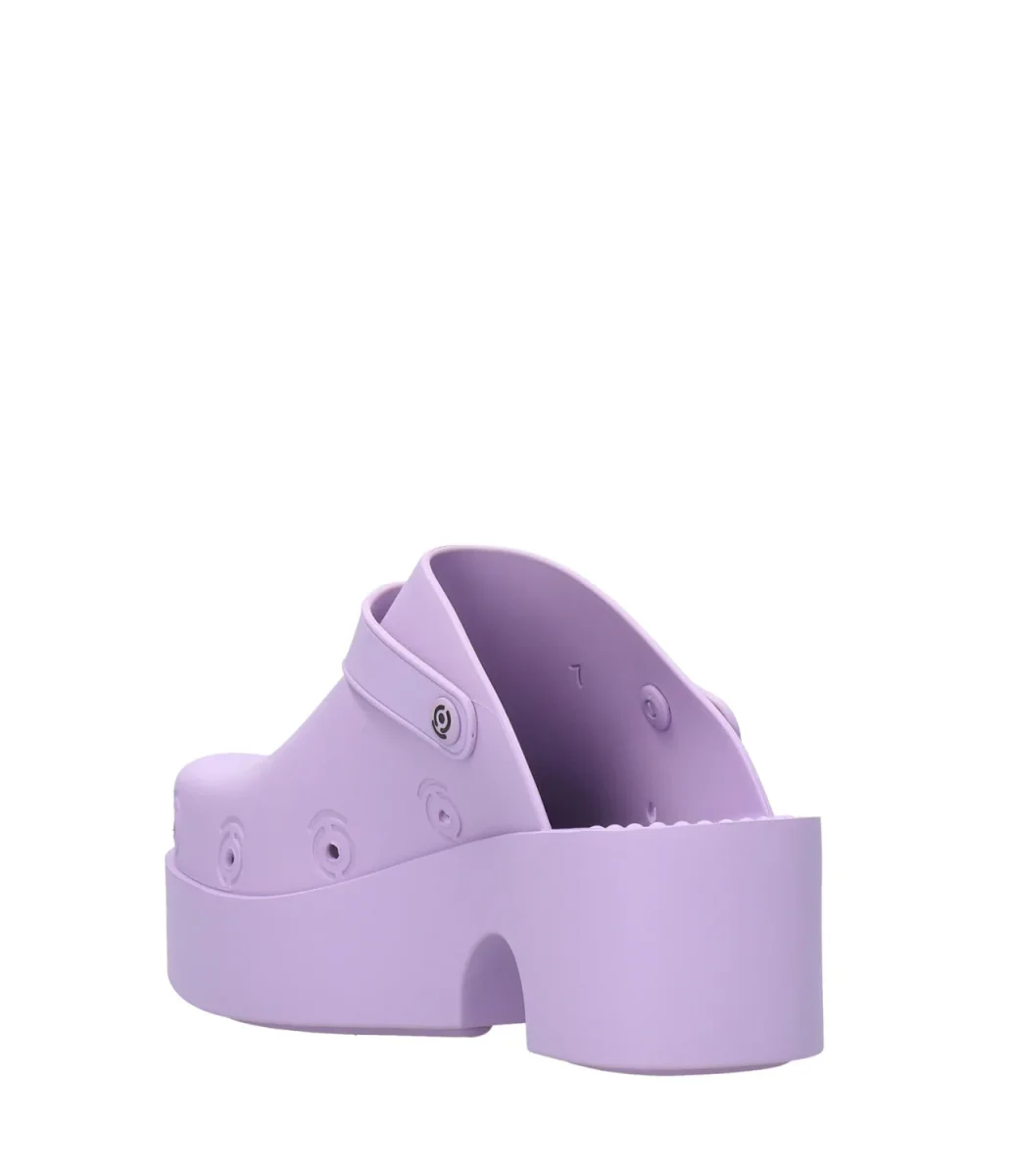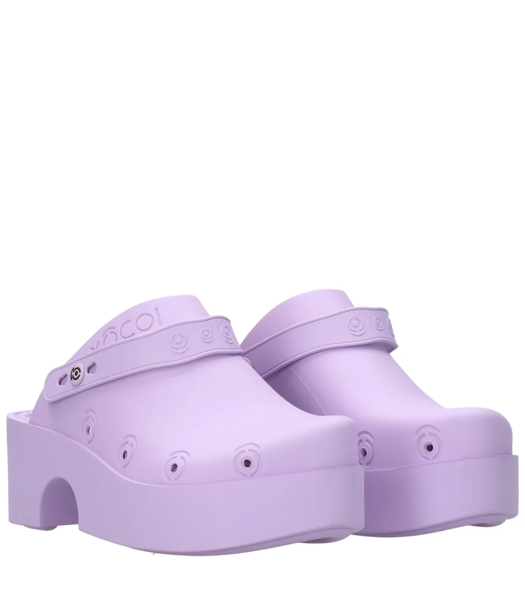 Zoccolo Xocoi realizzato in gomma viola. Lo zoccolo torna ad essere protagonista dell’estate: una calzatura lineare, comoda e versatile che darà una nota di stile a tutti i look. Cinturino regolabile, dettaglio logo frontale, bocchette di ventilazione, soletta interna dentellata,