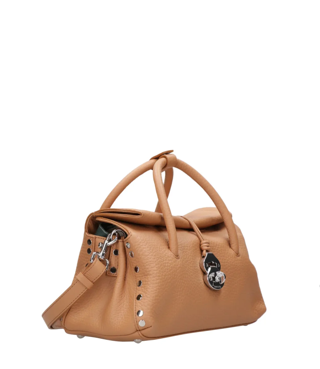 Borsa a mano Zanellato Dotta Centauro S in pelle granata, con chiusura roll-top magnetica e dai nastrini tubolari con fibbia twist turn lock in metallo argentato. Manici fissi tubolari con cinturino d’unione rimovibile. Tracolla in pelle rimovibile e regolabile. Interno foderato in twill con due scomparti, una tasca a toppa e una con zip.