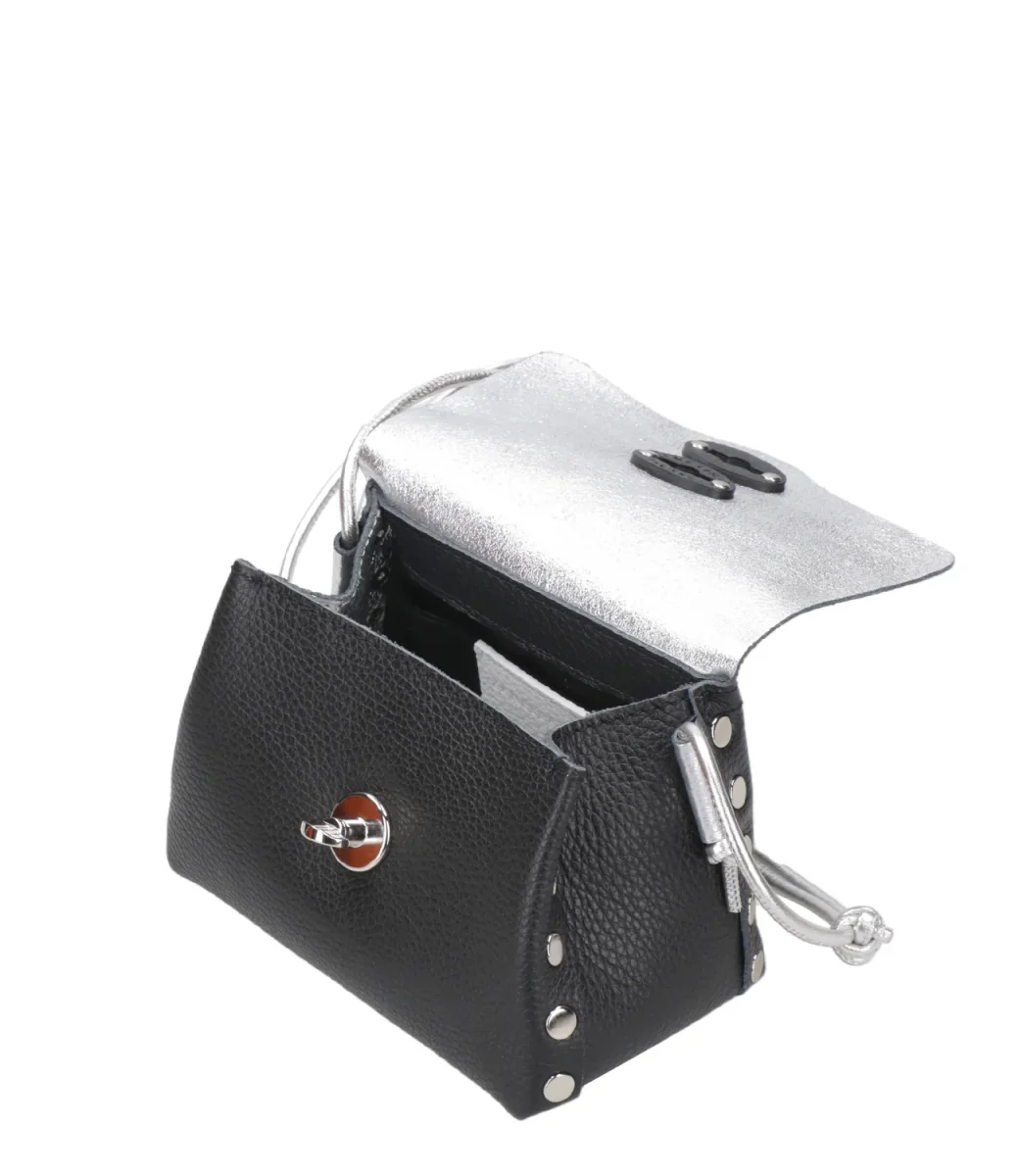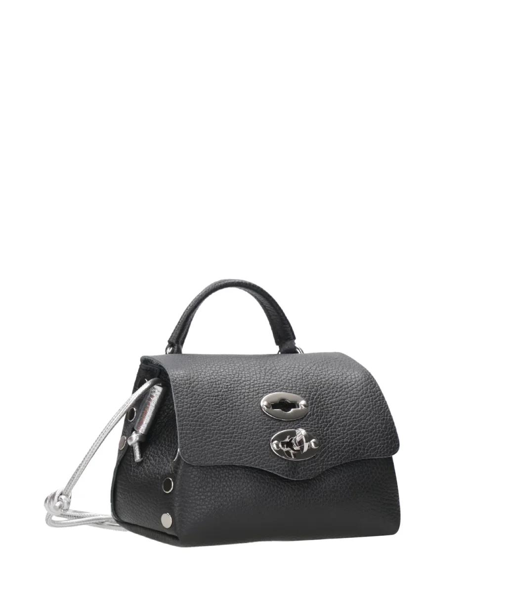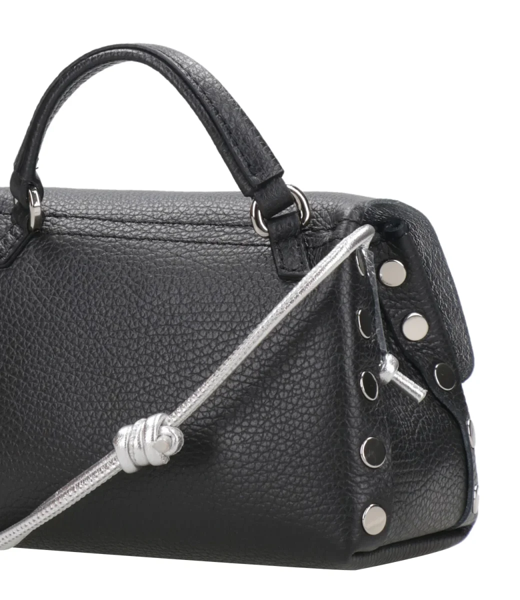 Borsa a tracolla Postina® Zanellato Daily Night Baby in pelle di vitello martellata, tracolla in cordino di pelle laminata regolabile. Chiusura con patta, spazi interni, decorata con borchie.