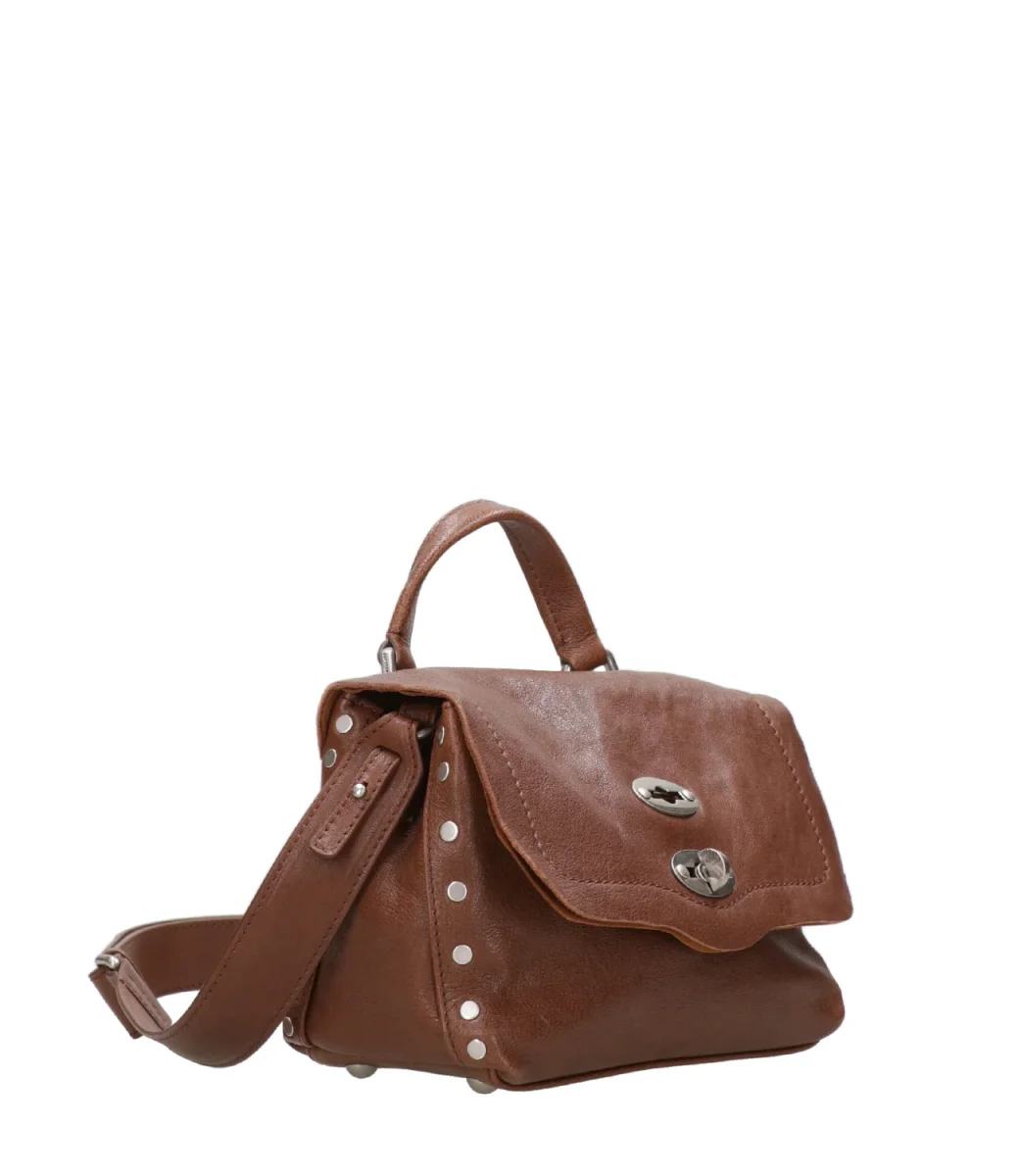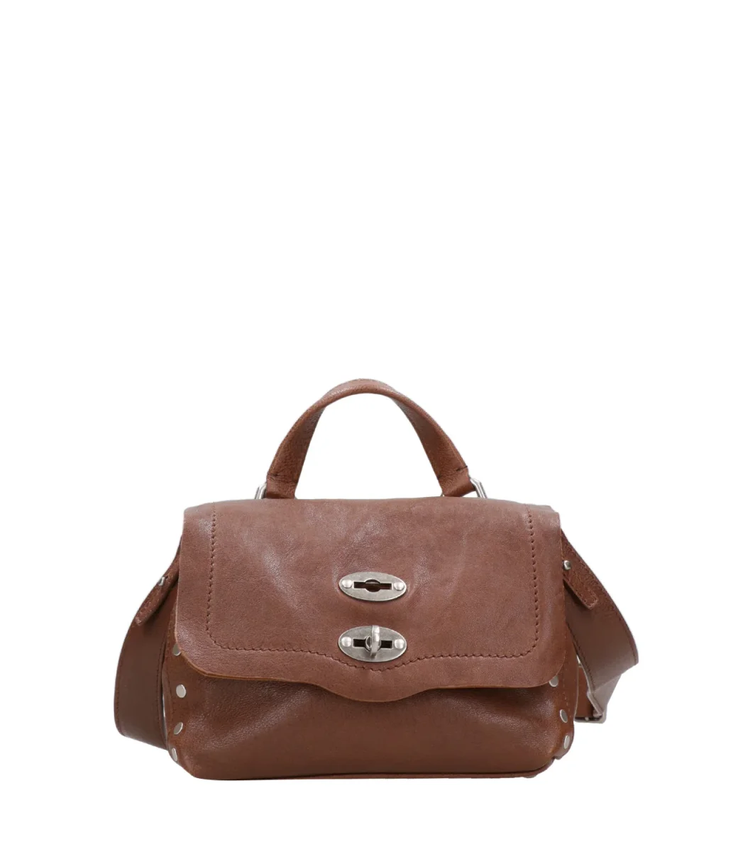 Borsa a tracolla Zanellato Postina® Tabacco Baby realizzata con pelle di agnello con aspetto vissuto e bordi a taglio vivo, cuciture a punti a mano, carrè con coste e confezionate rigorosamente all’interno di laboratori italiani certificati. Ogni borsa possiede un codice univoco al suo interno per garantire la sua originalità e unicità.