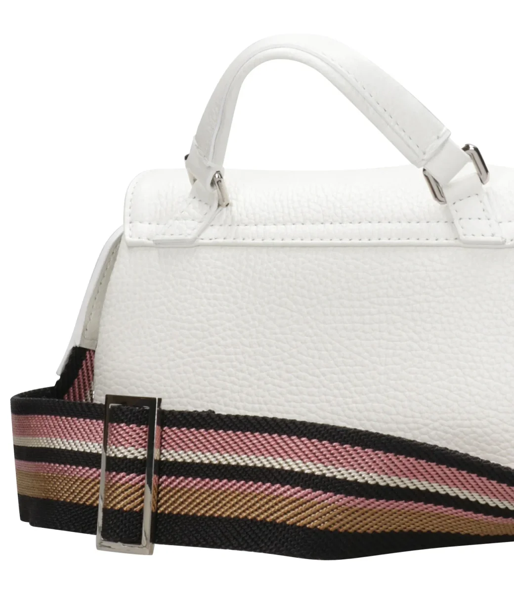 – Doppia tracolla in pelle ed in essuto jacquard regolabile e rimovibile